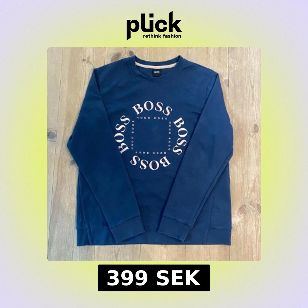 Nyköps pris 1700kr,ca, Snygg mörkblå sweatshirt från Hugo Boss med stort BOSS-tryck i guld på bröstet. Tröjan har rund hals, långa ärmar och ribbade muddar. Perfekt för dig som gillar stilrena och trendiga plagg med premiumkänsla.