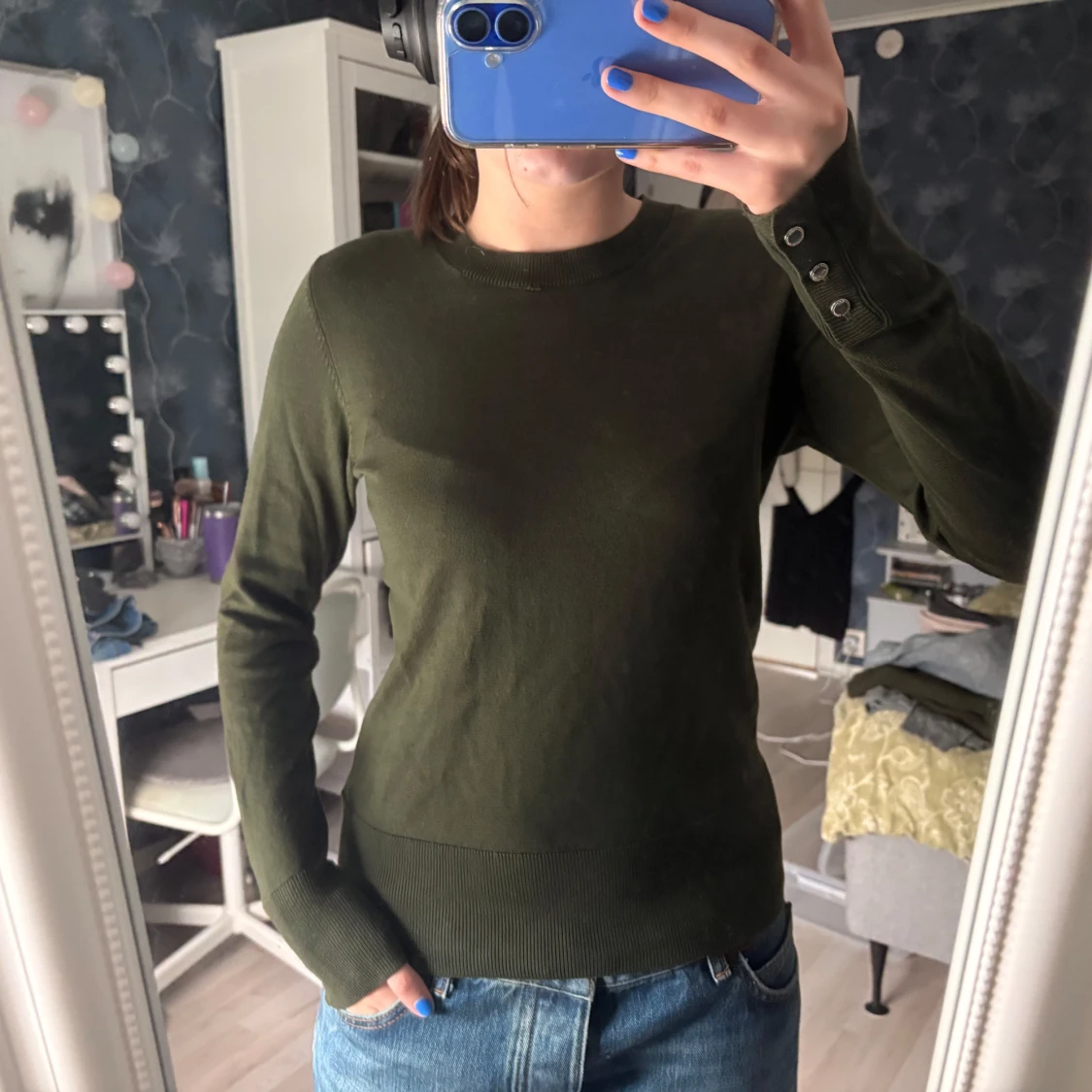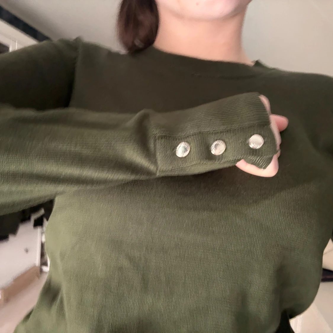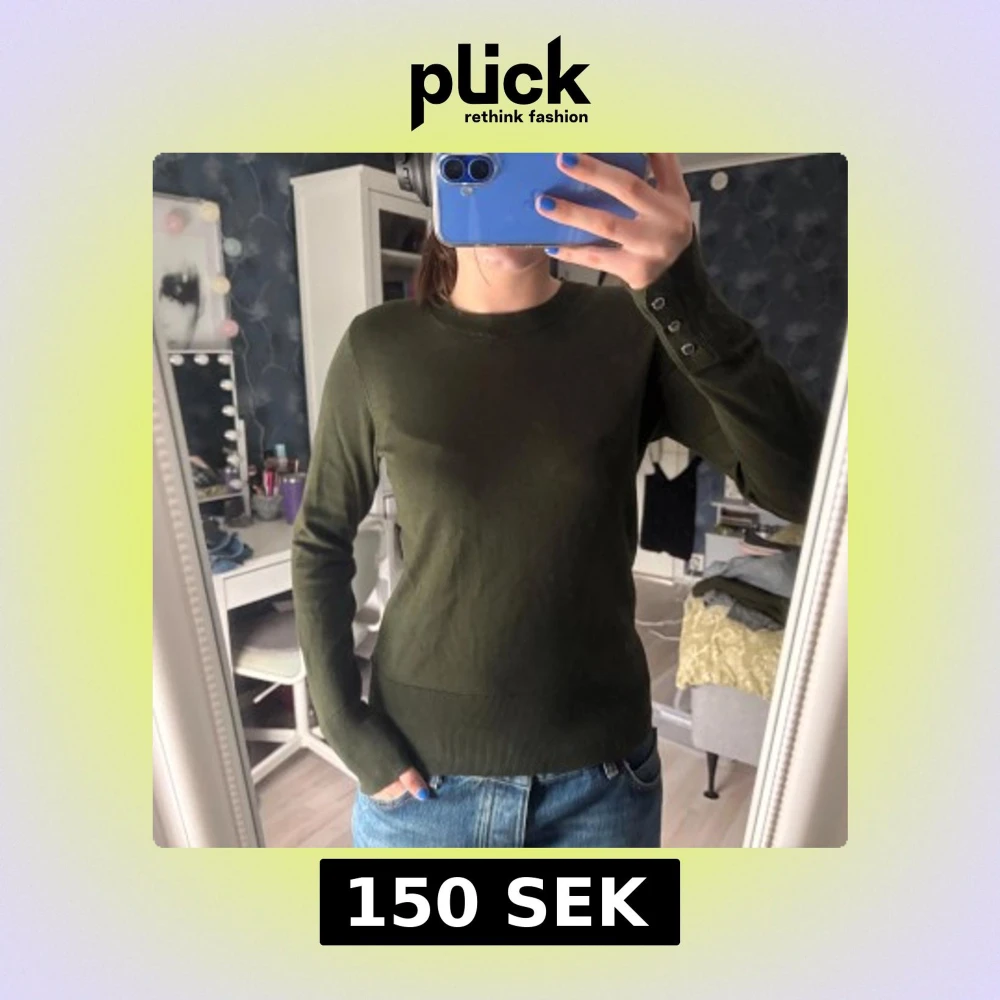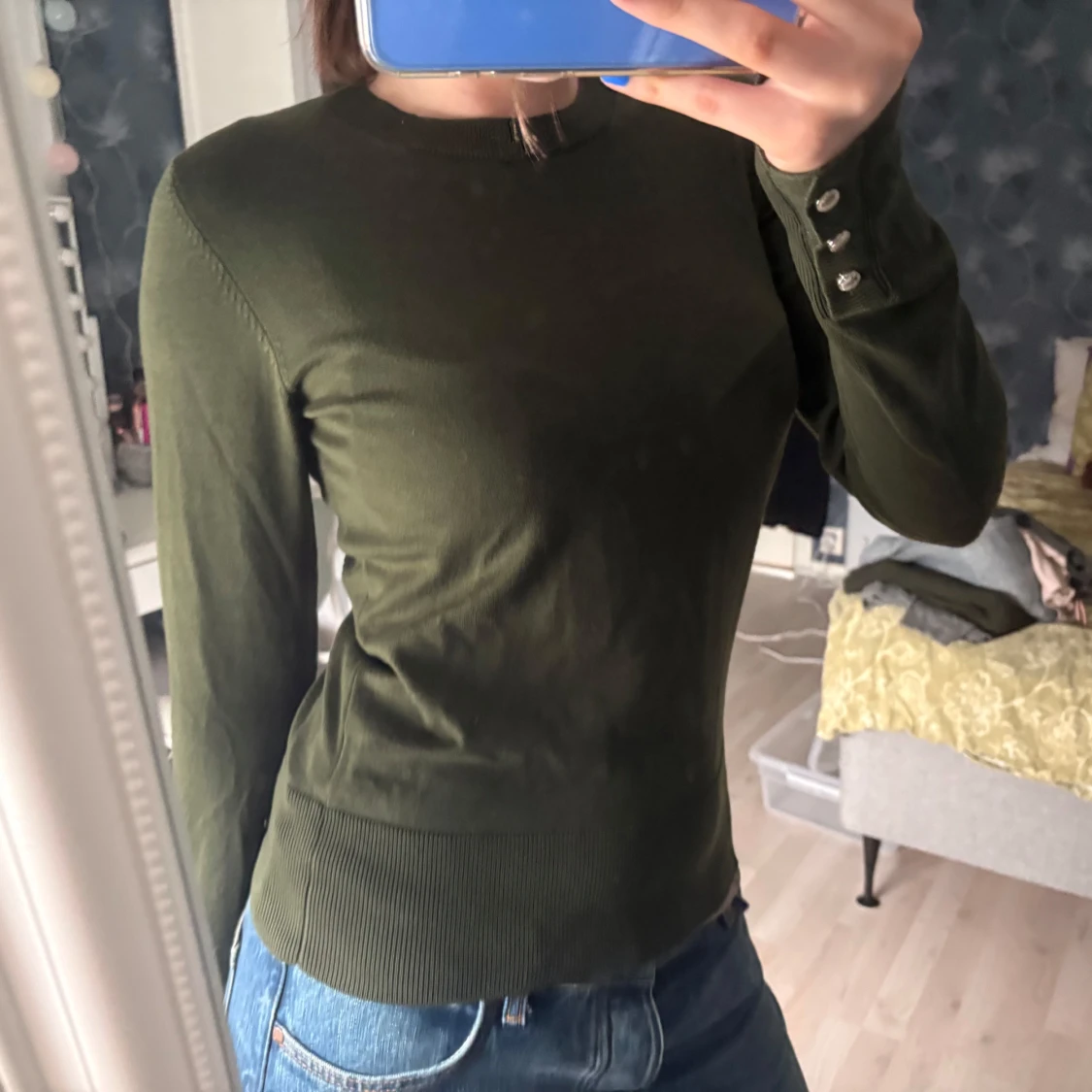 Olivgrön långärmad tröja från Holly & Whyte by Lindex i storlek S. Den guldiga brickan har ramlat av