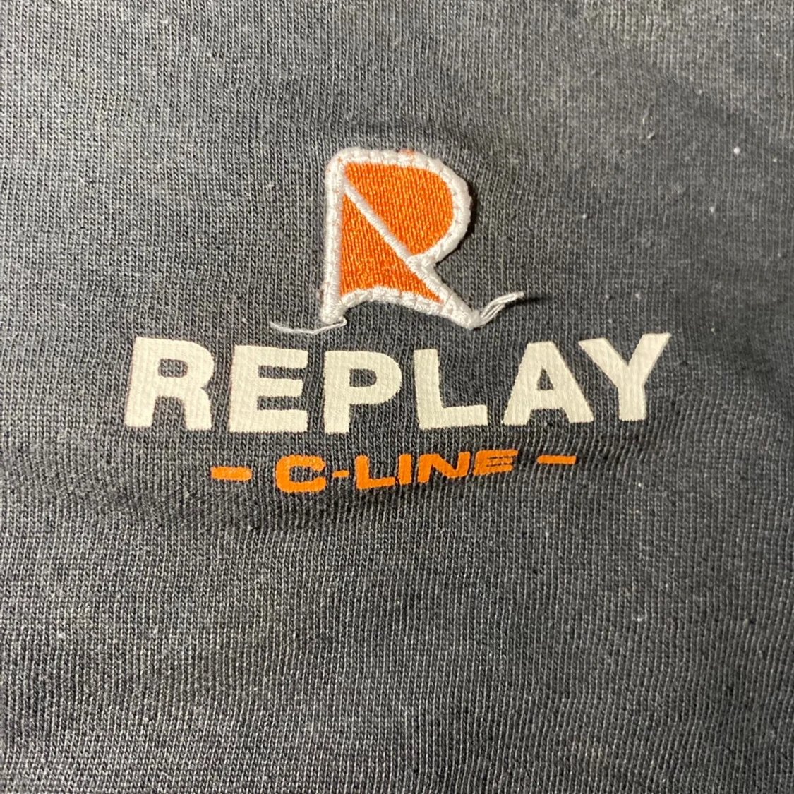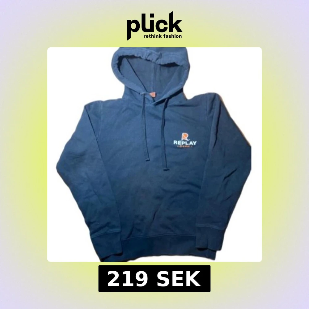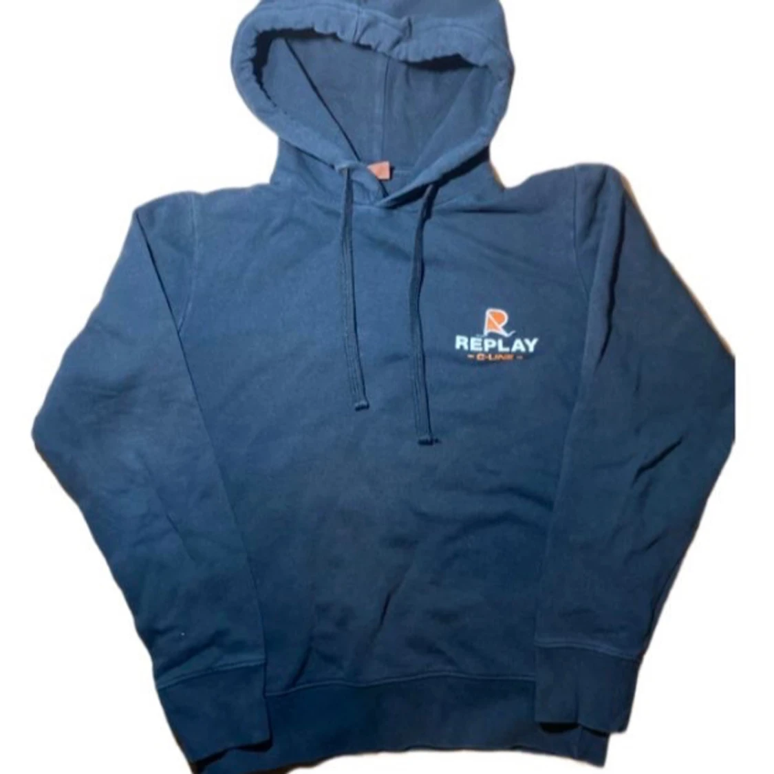 Snygg blå hoodie från Replay C-Line med broderad logga i vitt och orange på bröstet. Tröjan har huva med snörning och långa ärmar. Perfekt för dig som gillar streetwear och vill ha en chill look.