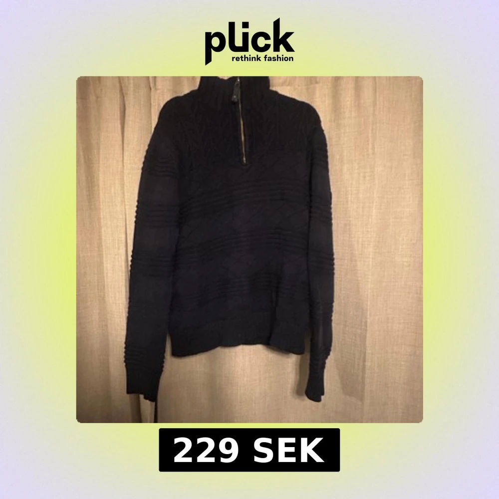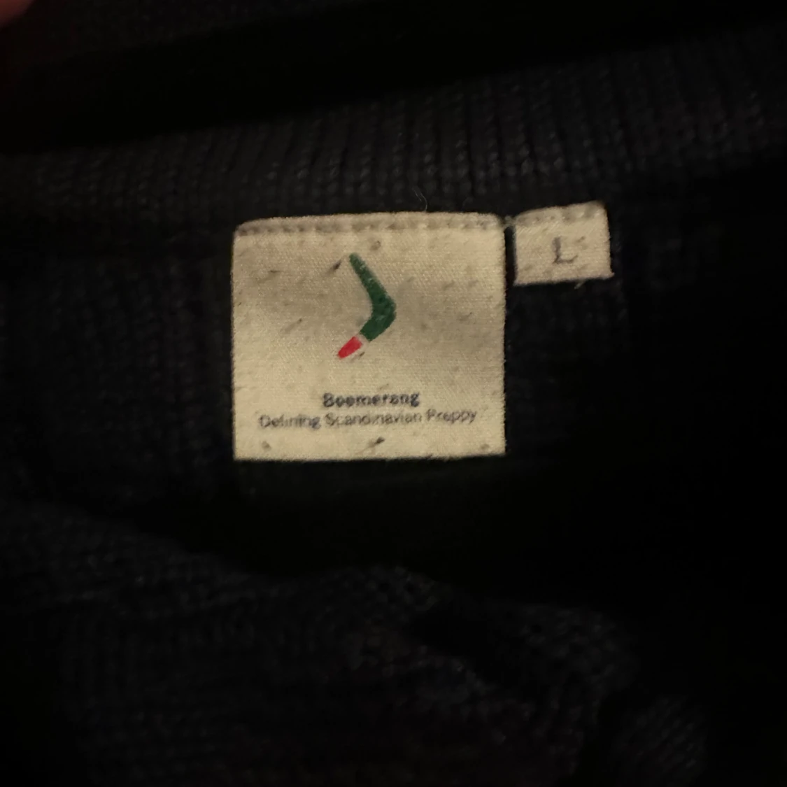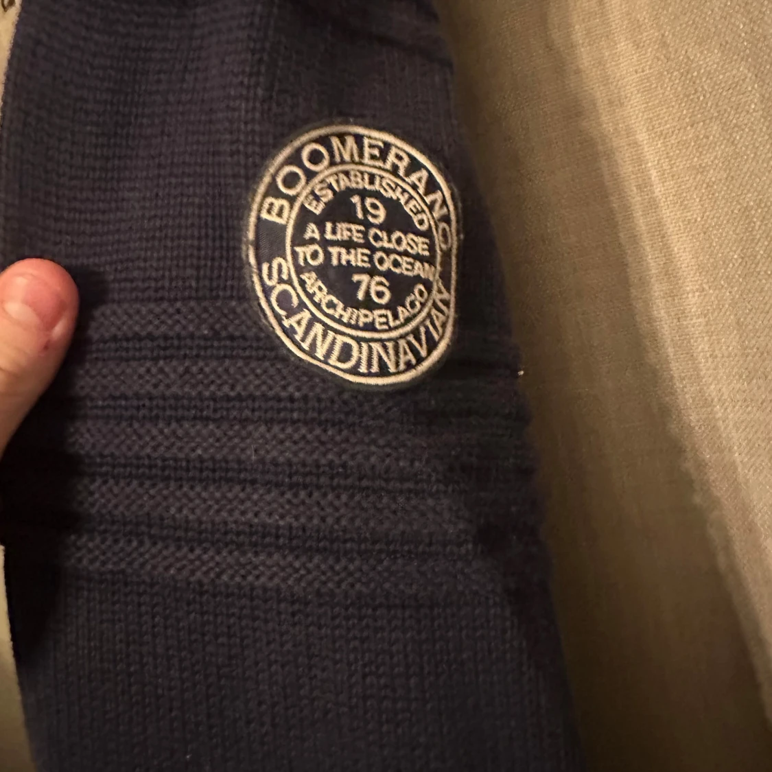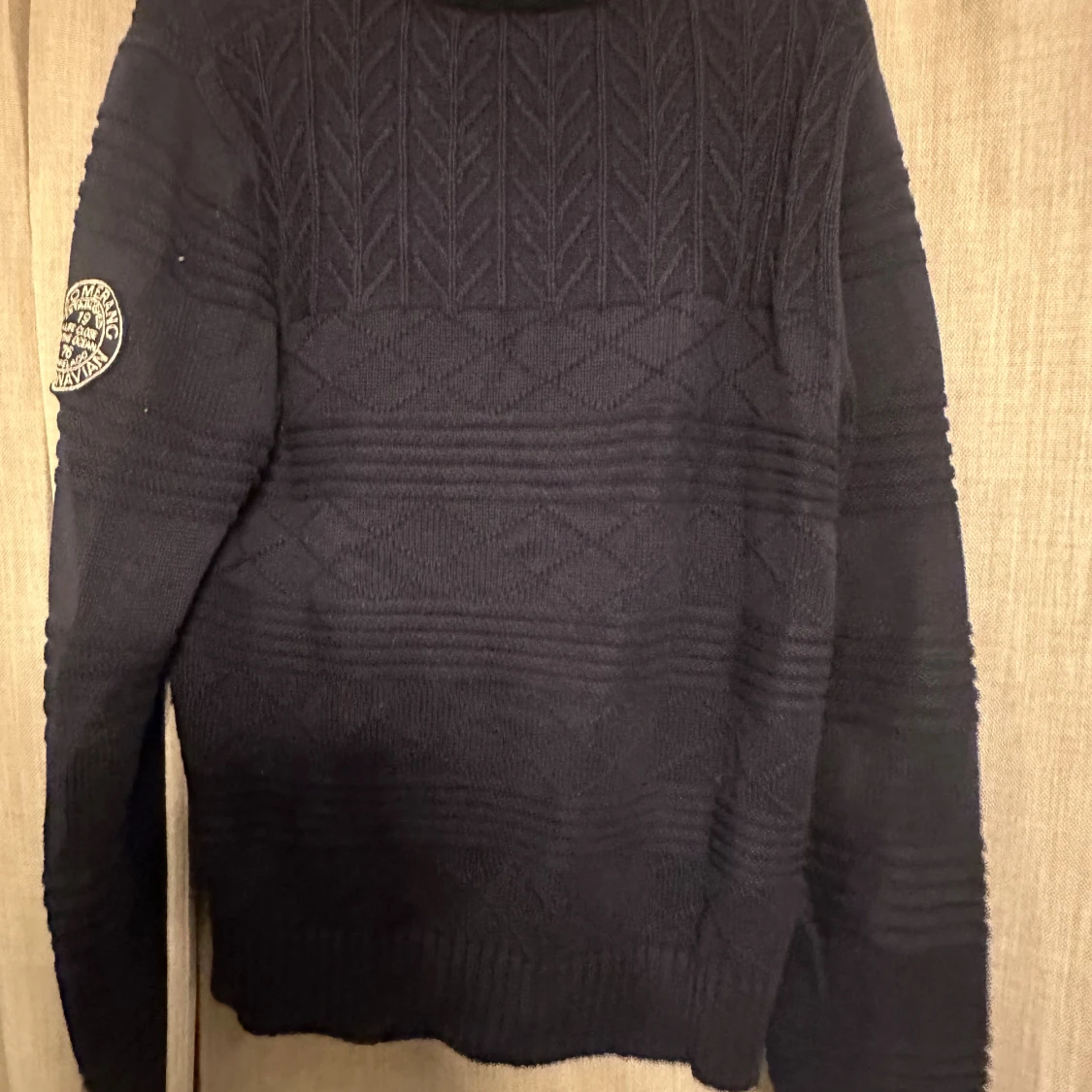 Mörkblå stickad tröja från Boomerang med snygg strukturstickning och halv dragkedja i halsen. Tröjan har lång ärm och en broderad patch på ena ärmen. Perfekt för kyliga dagar och ger en klassisk, stilren look.