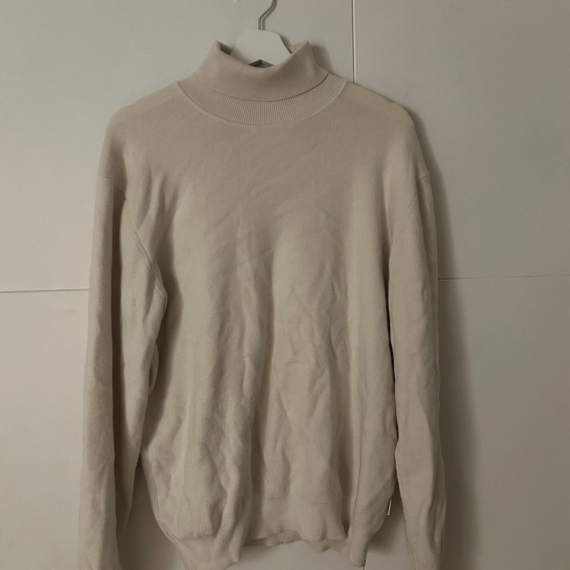 Snygg beige polotröja med ribbad krage och muddar. Tröjan är långärmad och gjord i mjuk ull, perfekt för kyliga dagar. Enkel och clean design som är lätt att matcha med andra plagg. Passar dig som gillar stilrena och bekväma tröjor.