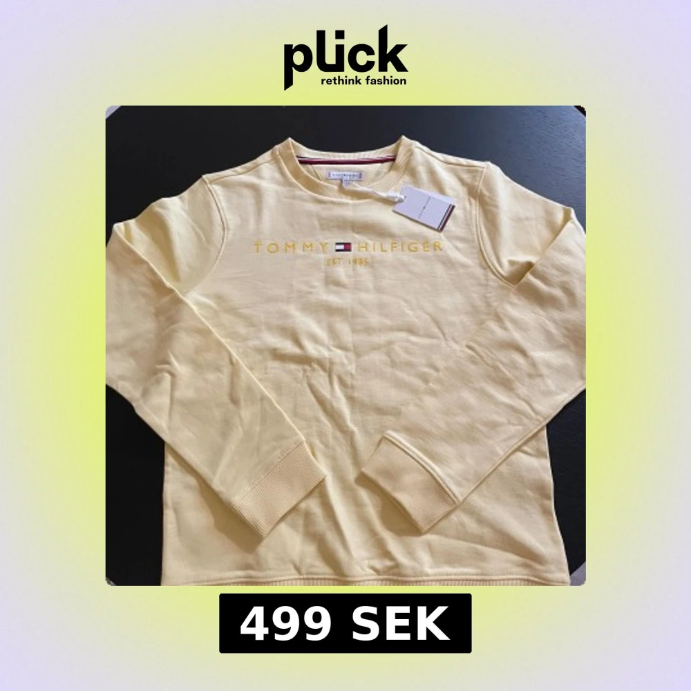 Säljer en oanvänd gul långärmad tröja från Tommy Hilfiger med logotyp och text 'EST 1985' på bröstet. Tröjan säljs pga att den har inte passat. Perfekt för en avslappnad look. Hör av er om ni är intresserade! Storlek 164/ 14 years