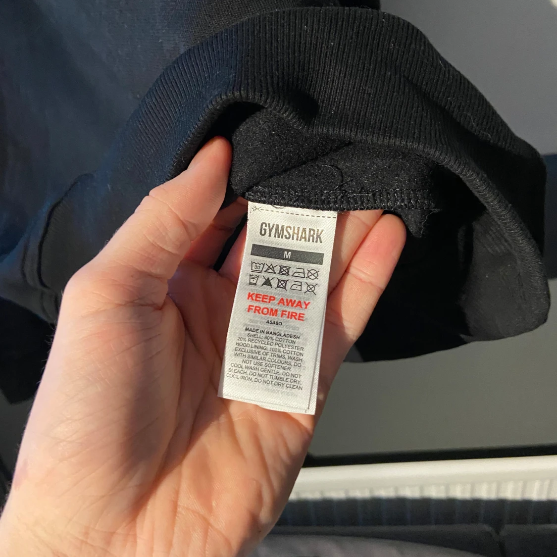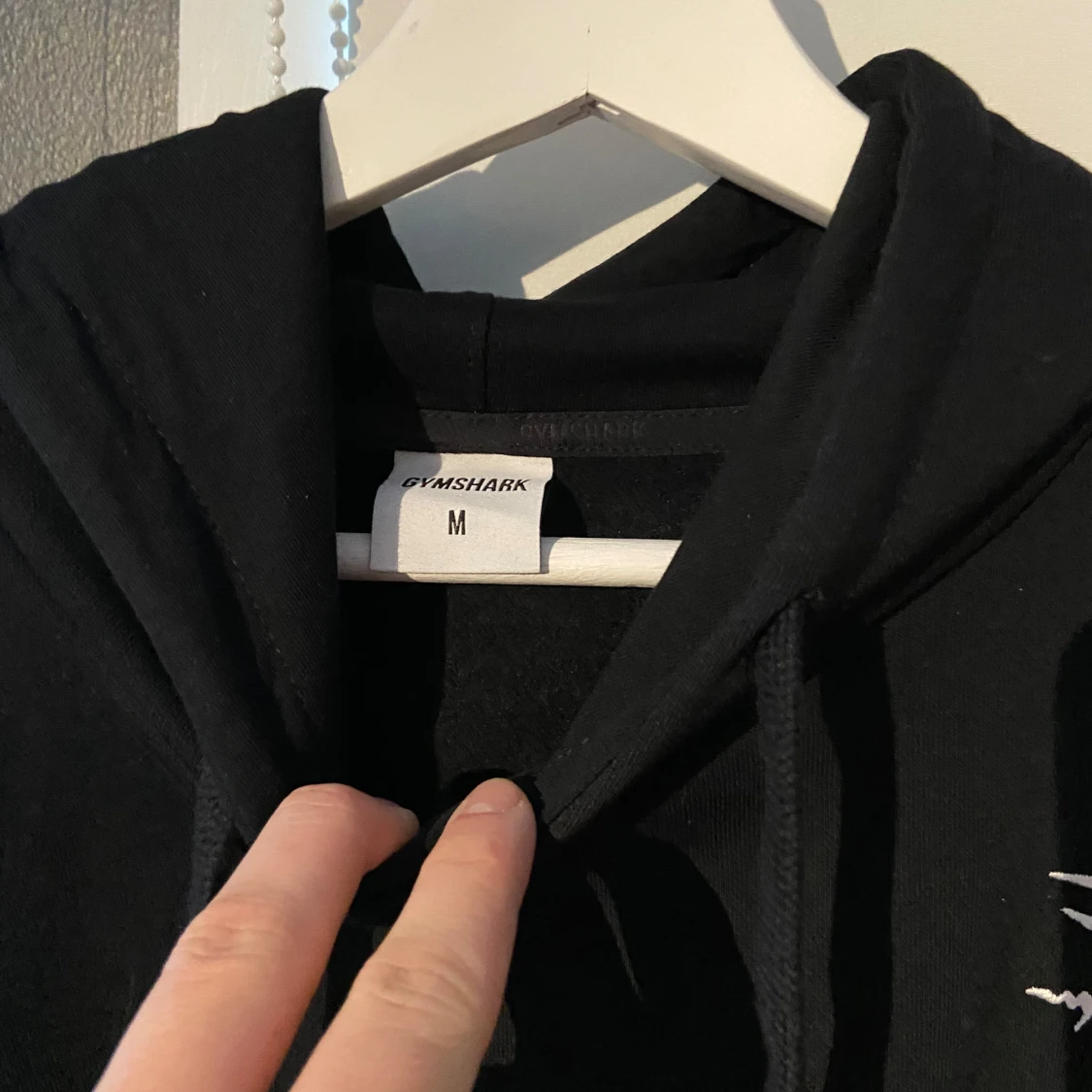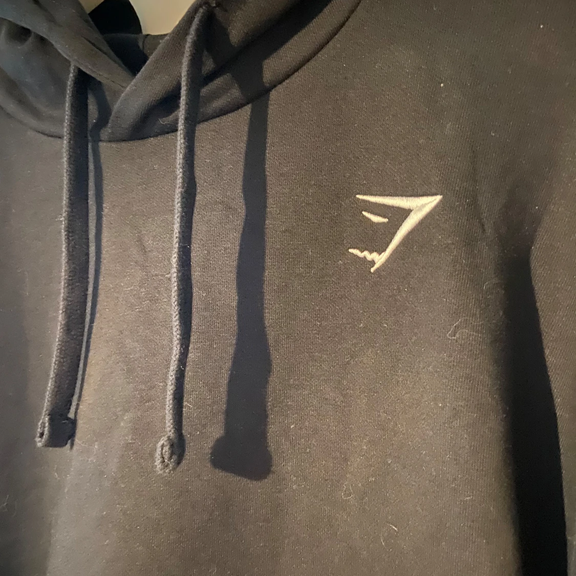 Säljer en stilren svart hoodie från Gymshark. Den har en klassisk design med dragsko i huvan och en liten logotyp på bröstet. Perfekt för en avslappnad look. Tröjan är helt ny och endast testad då det var försent att lämna tillbaka den..