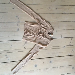 Säljer en snygg beige hm tröja som har blivit för liten för mig 💕 den är i storleken xs och är rippad 💕 har knytning i mitten som man ser på bilden i mitten 💕 frakten ingår