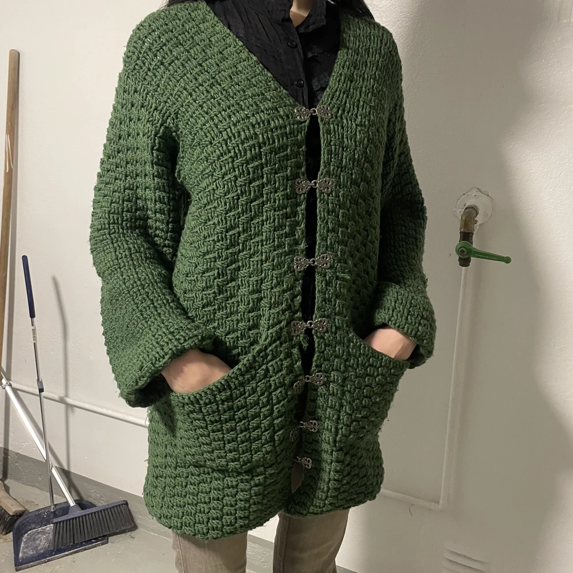Varm kofta med fina spännen.