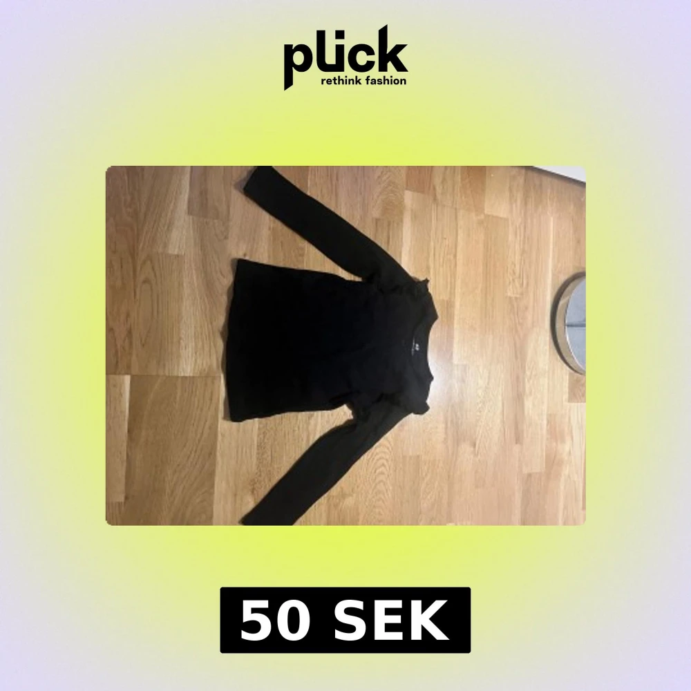 Svart långärmad tröja från H&M med volangdetaljer på axlarna. Tröjan är ribbad och har en figurnära passform, perfekt för dig som gillar en stilren look med en twist. Materialet känns mjukt och stretchigt.