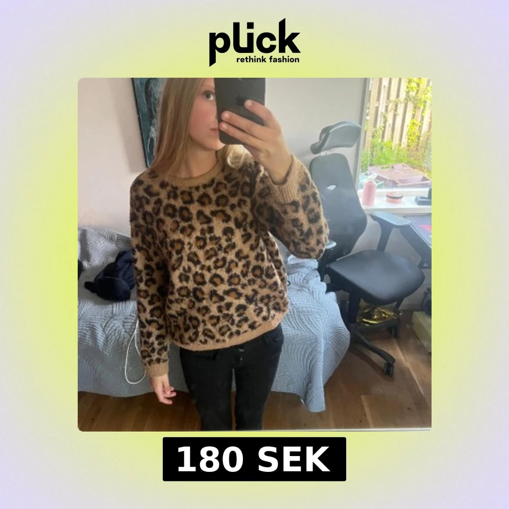 Säljer en snygg stickad tröja från H&M med leopardmönster i bruna och svarta toner. Tröjan har rund halsringning och långa ärmar. Perfekt för dig som vill sticka ut lite extra i höst och vinter!