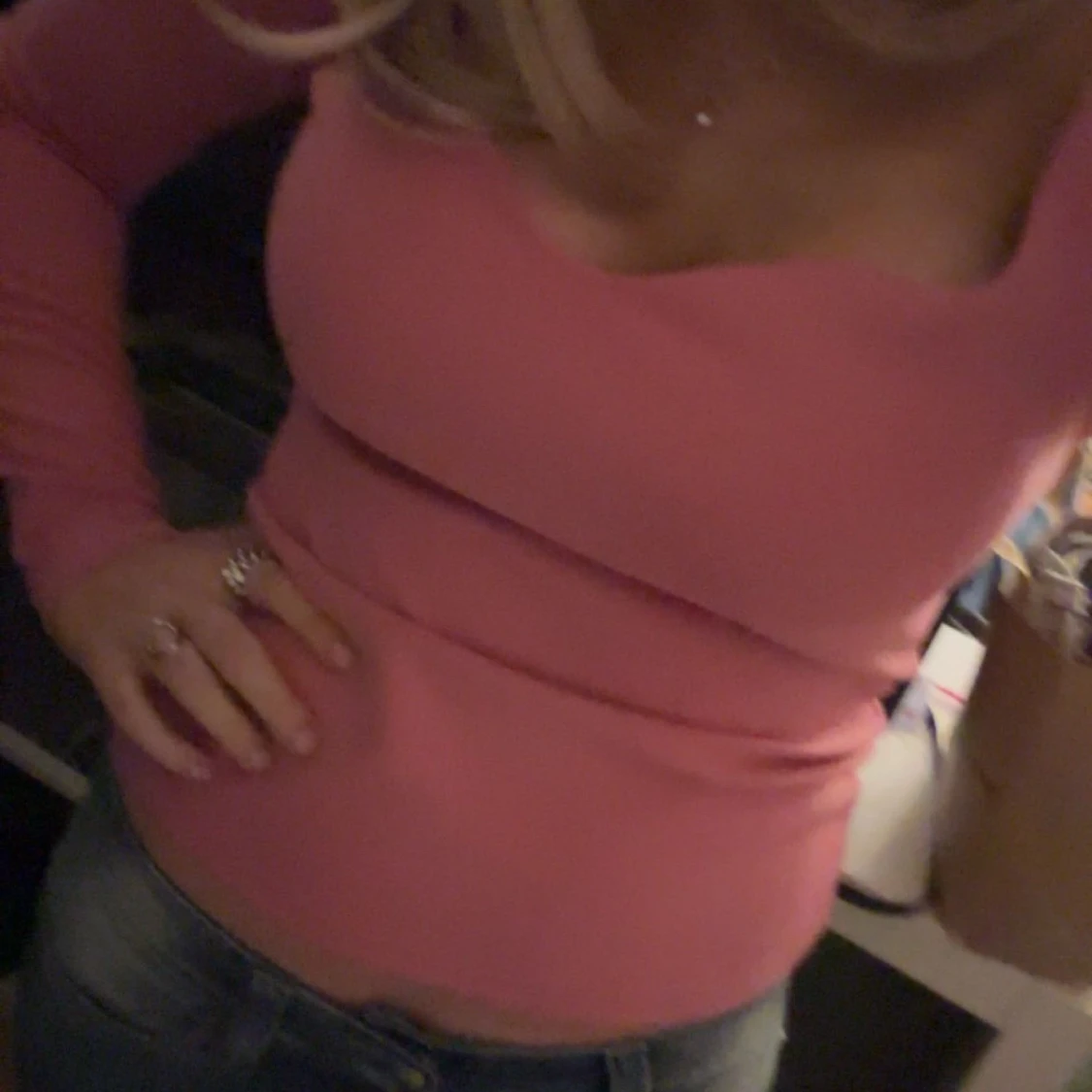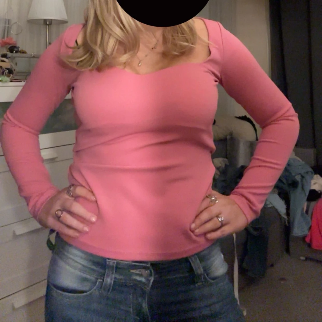 Säljer en snygg rosa långärmad topp med en tight passform. Toppen har en enkel design som gör den lätt att matcha med olika outfits. Från H&M aldrig använd. Storlek M