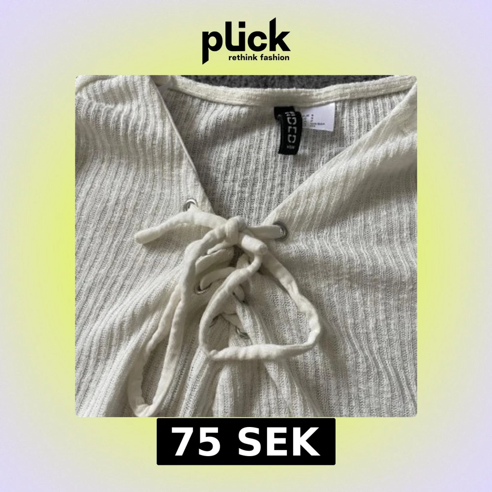 Säljer en vit ribbad långärmad tröja från H&M med snygg snörningsdetalj framtill vid halsen. Perfekt för dig som gillar enkla men trendiga plagg. Supermjuk och skön att ha på sig!