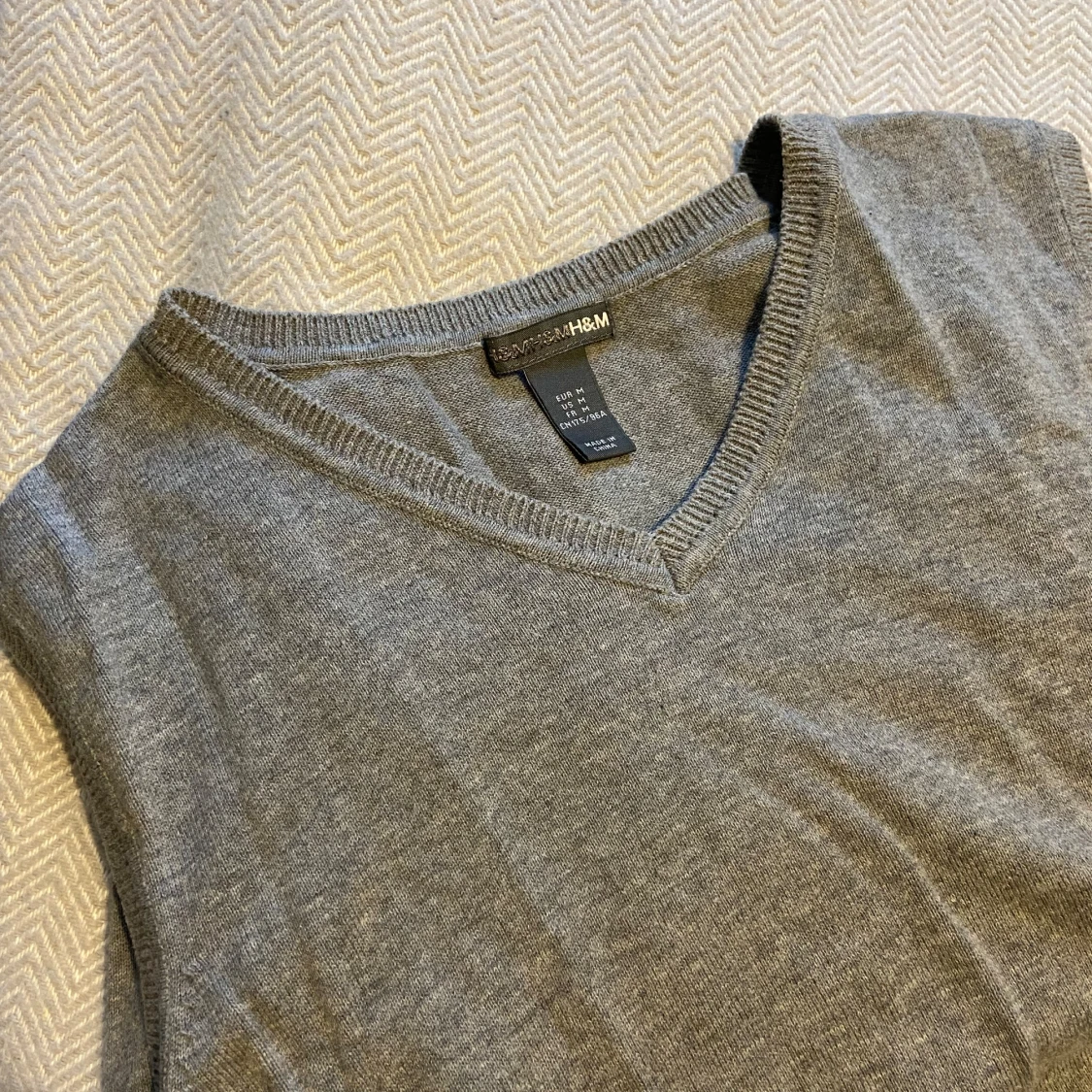 Grå V-ringad tröja från H&M. Perfekt för lager-på-lager eller som den är. Tröjan är i ett mjukt material och har en klassisk passform.