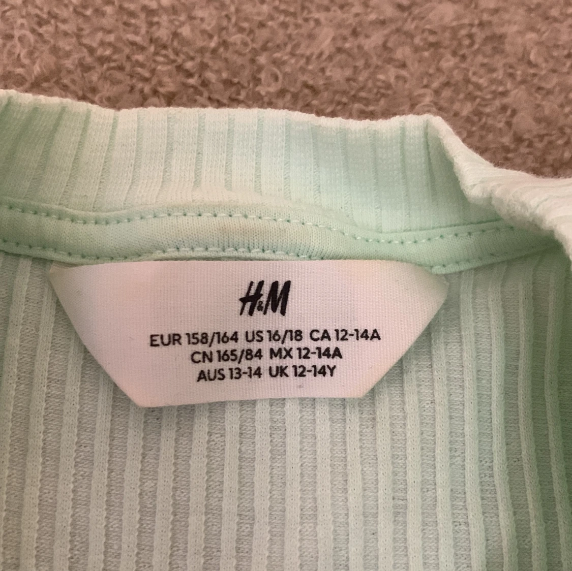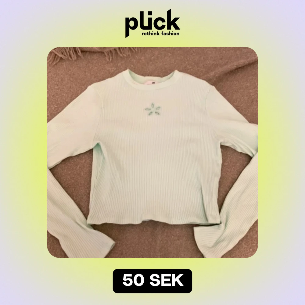 En ljusgrön ribbad tröja från H&M med ett broderat blommönster på bröstet. Tröjan har långa ärmar och en rund halsringning. Använt 1 gång.