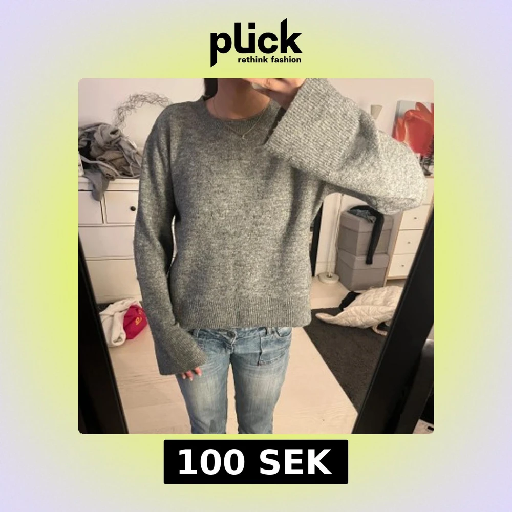 Mysig grå stickad tröja med långa ärmar och ribbade muddar. Perfekt nu till vintern.