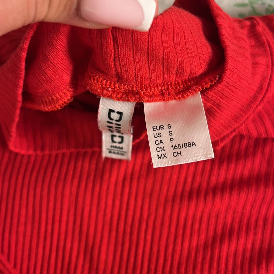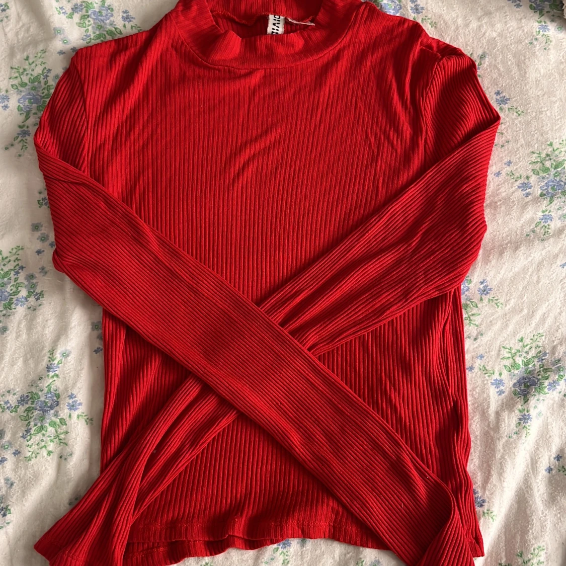 Säljer en röd ribbad långärmad topp från H&M. sitter tajt i passformen och är i ett skönt material :)