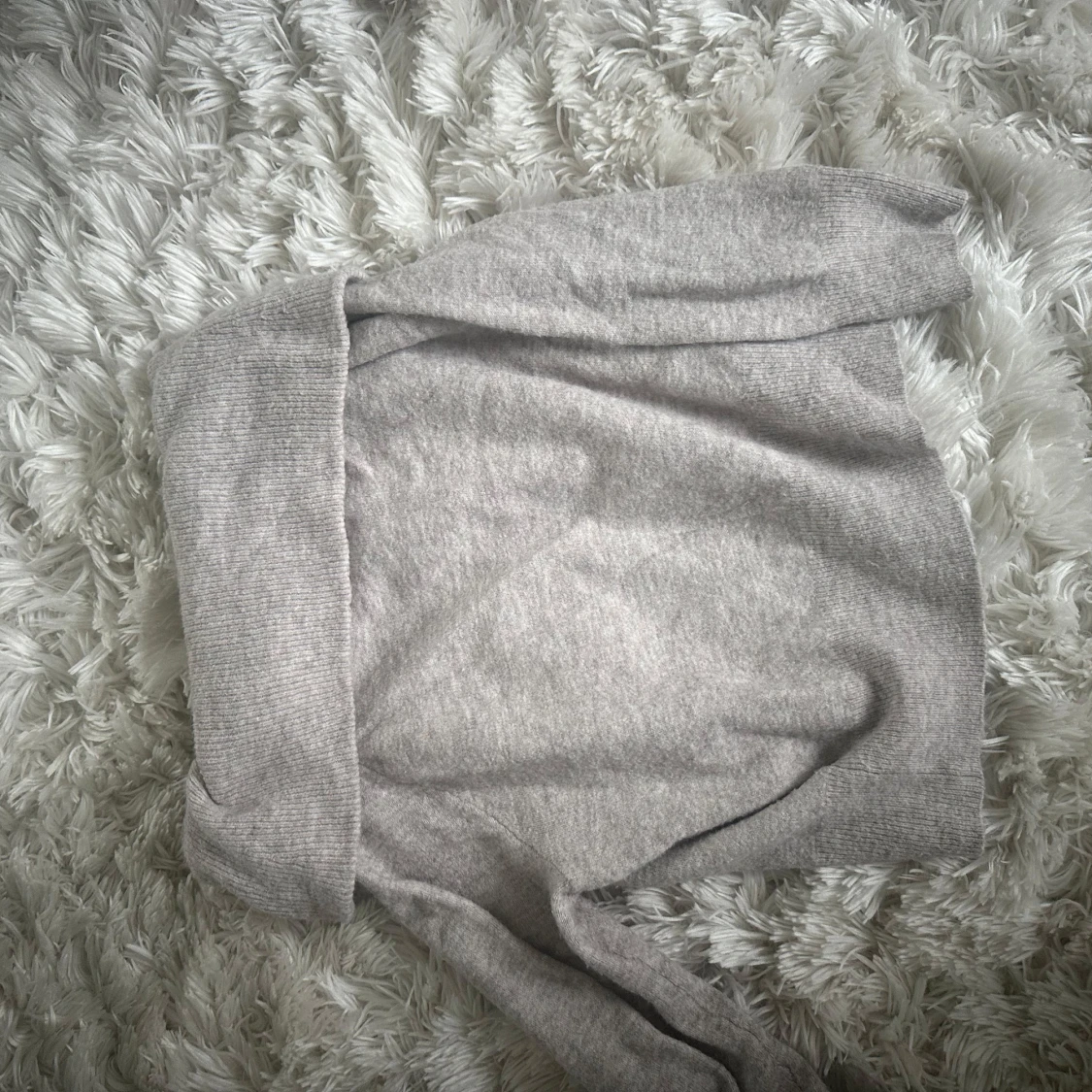 Supermjuk ljusgrå stickad tröja från H&M med bred offshoulder-krage. Perfekt för dig som gillar en chill men ändå snygg vibe. Tröjan har lång ärm och är i ett skönt material som känns både mysigt och stilrent. Tar frakt!