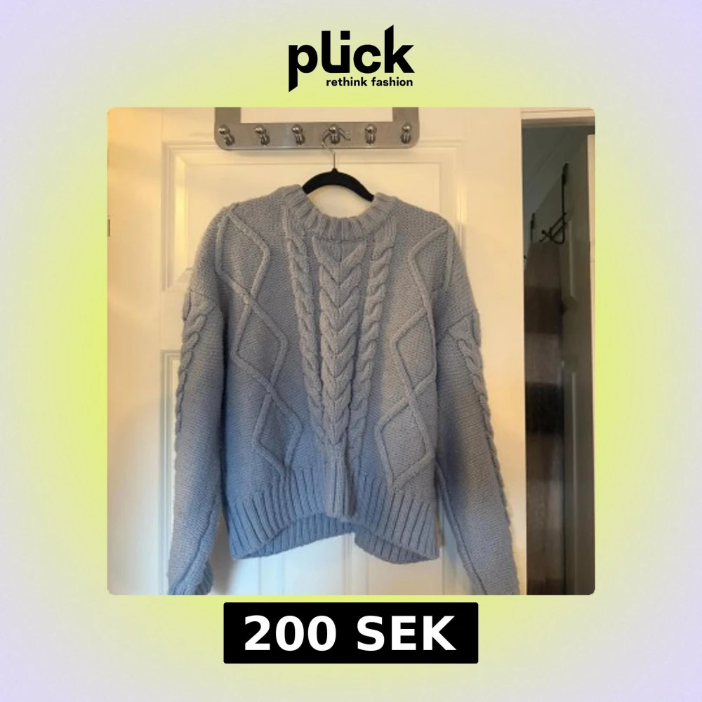 Ljusblå stickad kabeltröja