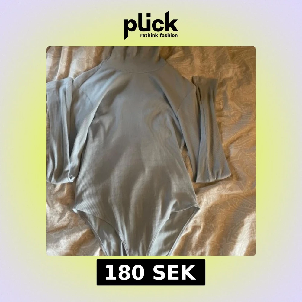 Säljer en stilren ljusblå polobody med ribbad struktur. Tröjan har långa ärmar och en hög krage, perfekt för kyligare dagar. Den är både bekväm och snygg, och passar bra till jeans eller kjol.