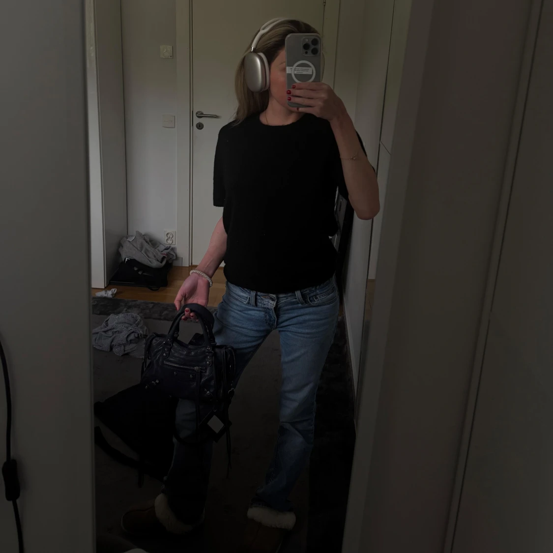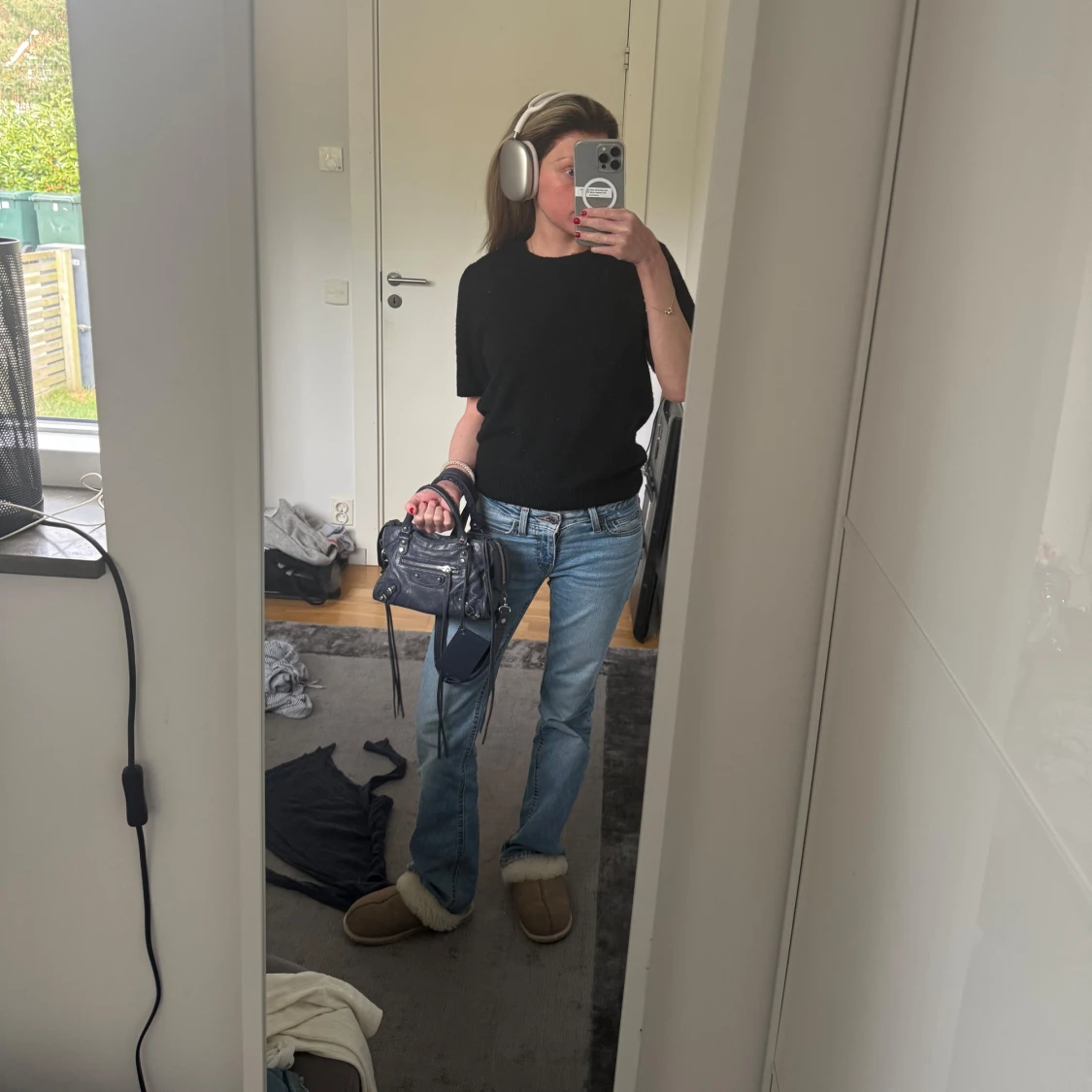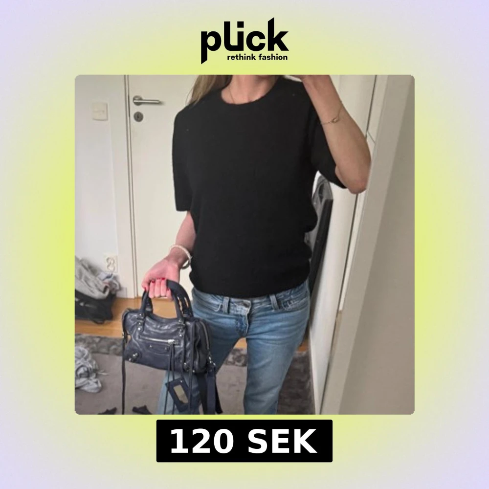 Säljer en stilren svart stickad kortärmad tröja, från hm storlek s. Super super fin!!