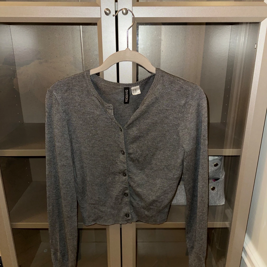 Säljer en stilren grå kofta från Gina Tricot. Den har långa ärmar och knappar framtill. Perfekt för lager-på-lager och passar till många olika outfits.
