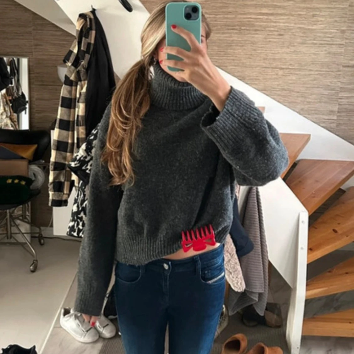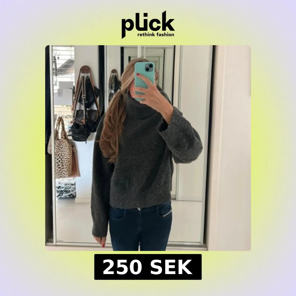 Mysig mörkgrå polotröja från H&M i storlek XS. Tröjan är stickad med bred polokrage och har en loose fit med långa ärmar och ribbade muddar. 🩶🩶🩶
