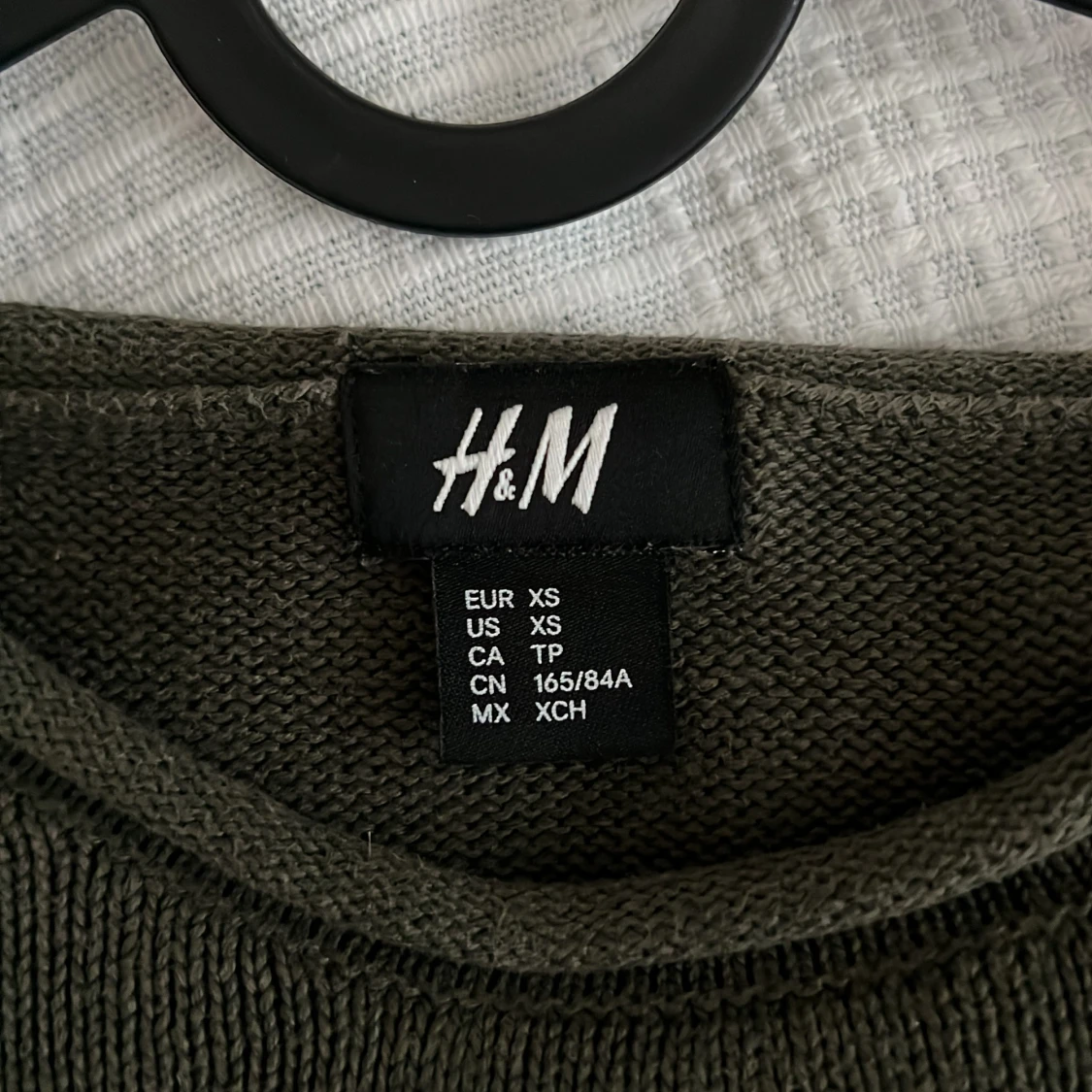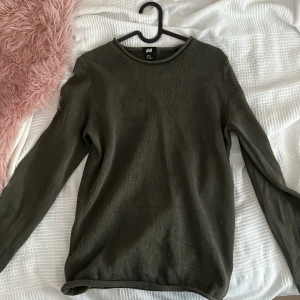 Säljer en olivgrön tröja från H&M i storlek XS. Tröjan har en enkel design med långa ärmar och rund halsringning. Perfekt för en avslappnad stil.