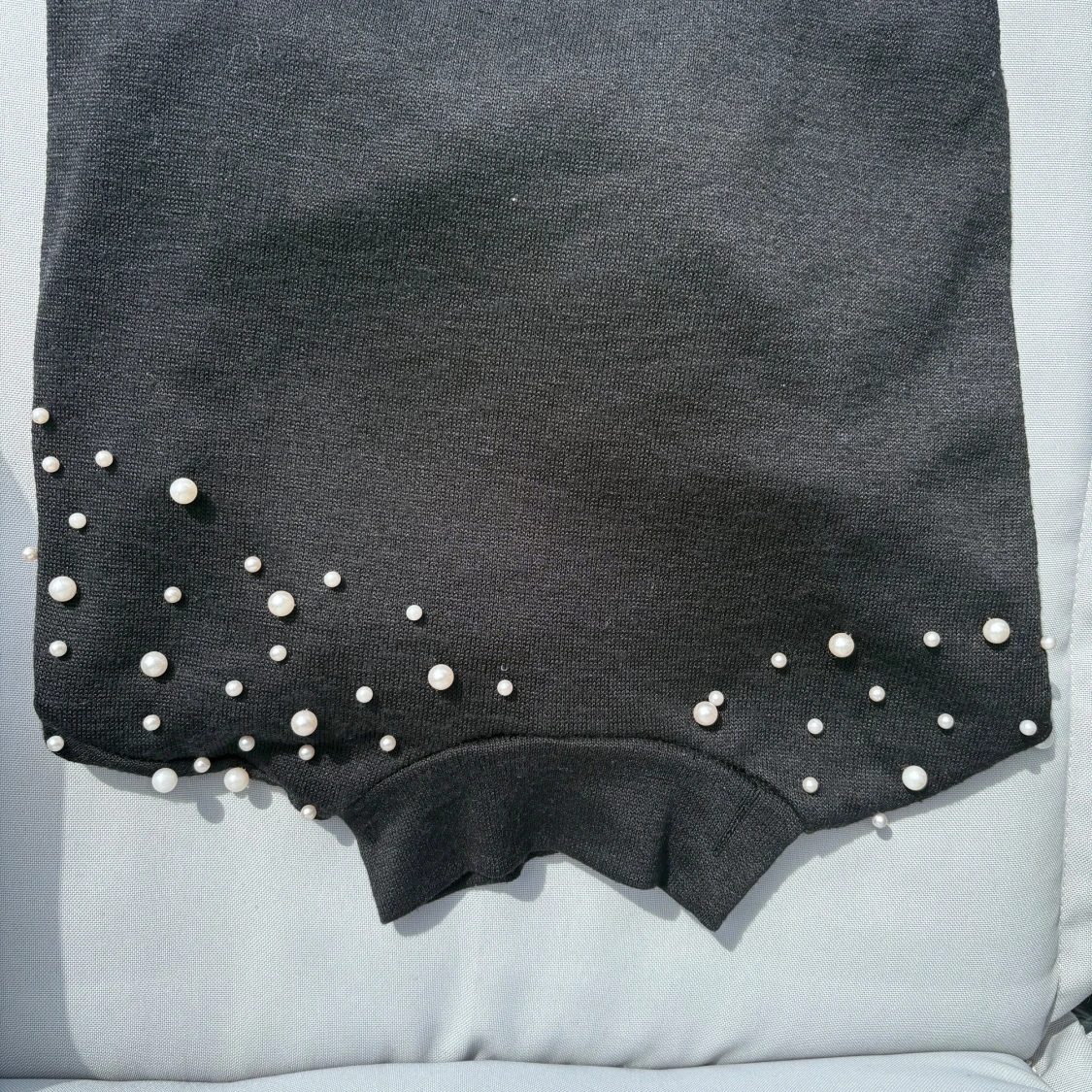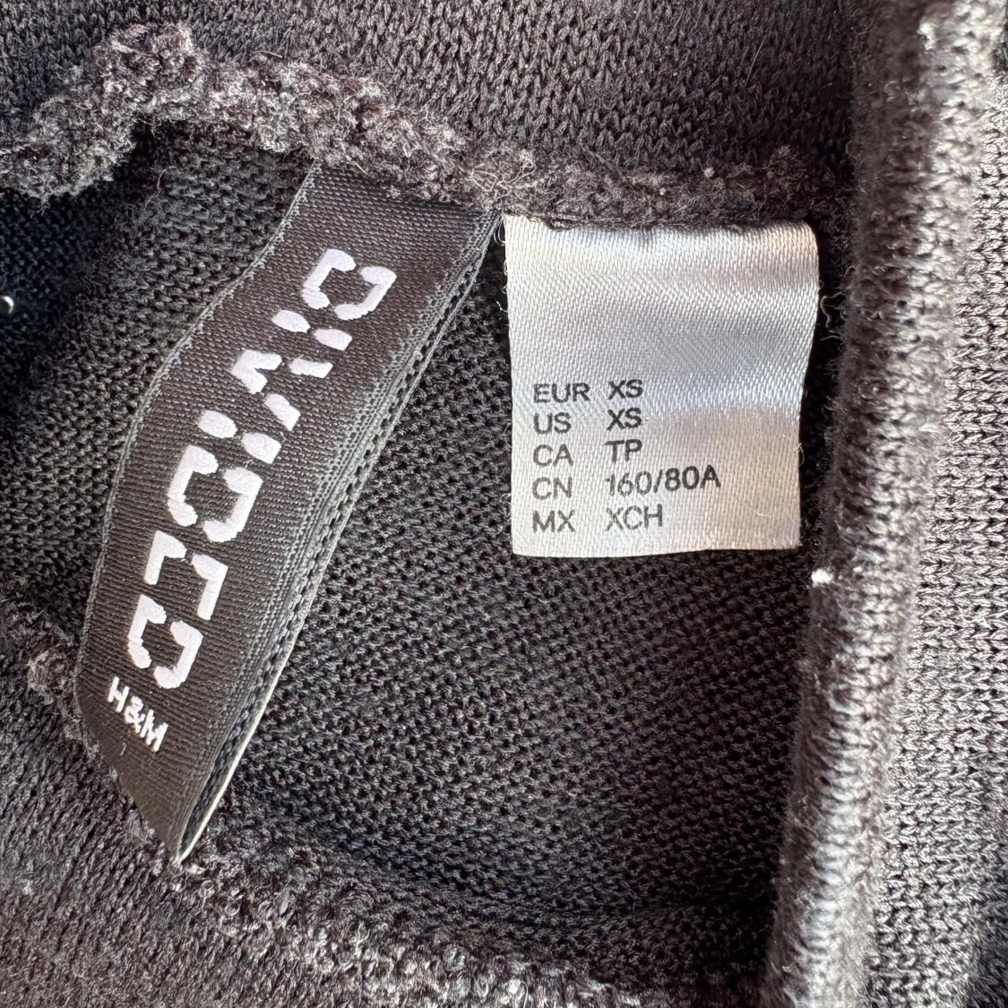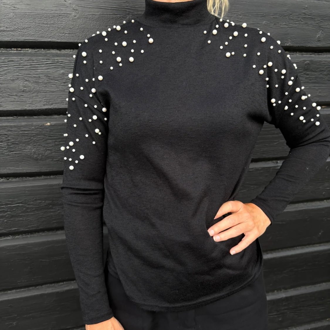 Svart polotröja med lång ärm och coola pärldetaljer på axlar, ärmar och nederkant. Tröjan har en hög krage och är stickad i mjukt material som känns skönt mot huden. Perfekt för dig som gillar att sticka ut med snygga detaljer. XS från H&M