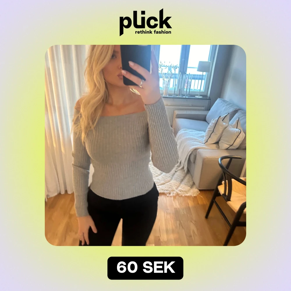 Grå off shoulder tröja - Säljer en tajt off shoulder tröja från bershka helt oanvänd, den är i storlek S. Priset kan diskuteras!💕