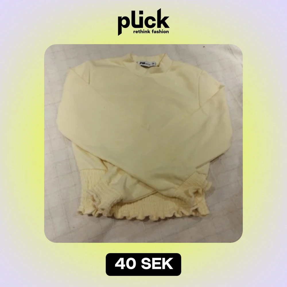 Säljer en söt gul tröja från FB Sister i storlek XS. Den har långa ärmar och en ribbad kant vid ärmslut och nederkant som ger en fin volangeffekt. Perfekt för vår och sommar!