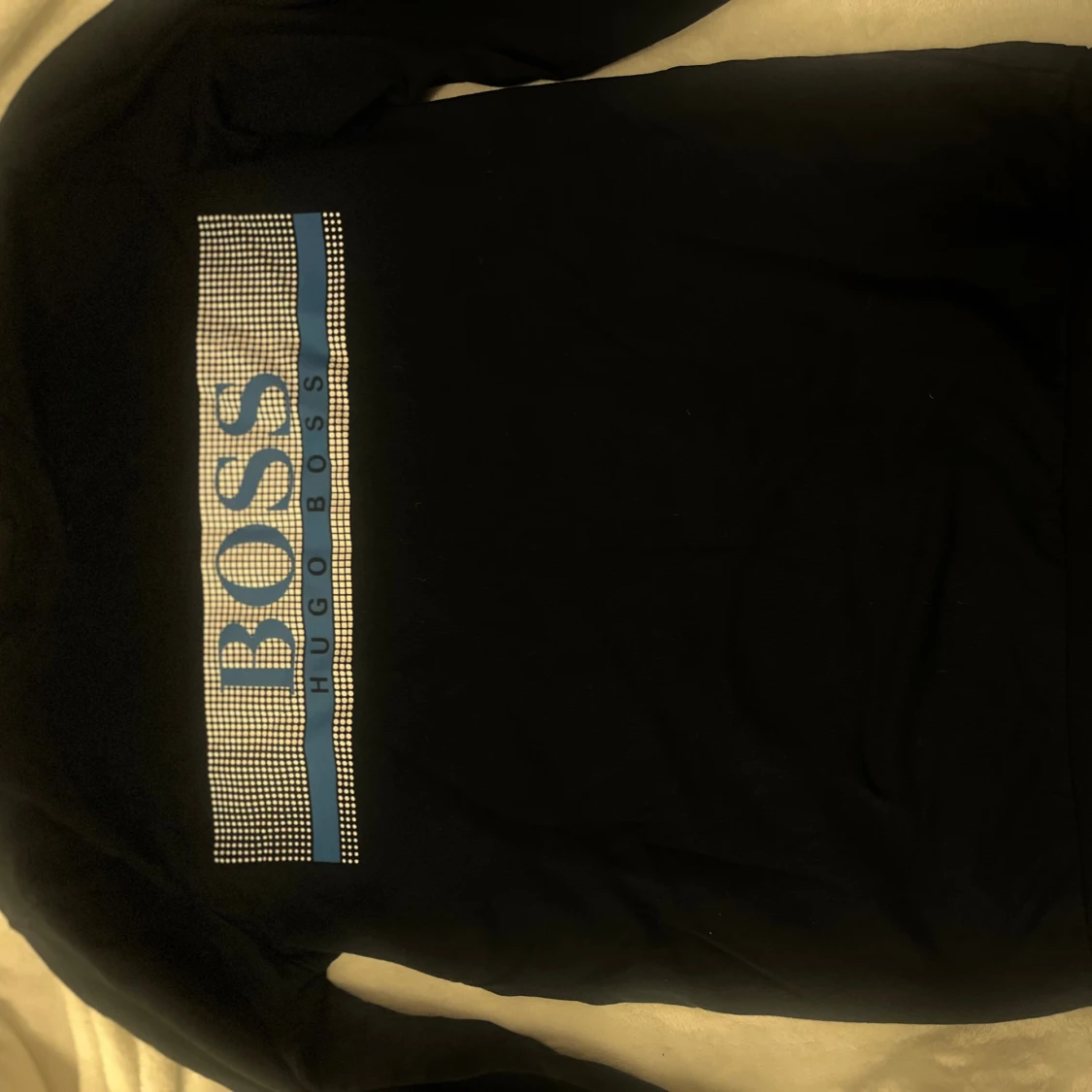 Svart långärmad tröja från Hugo Boss med stor blå och vit logga framtill.