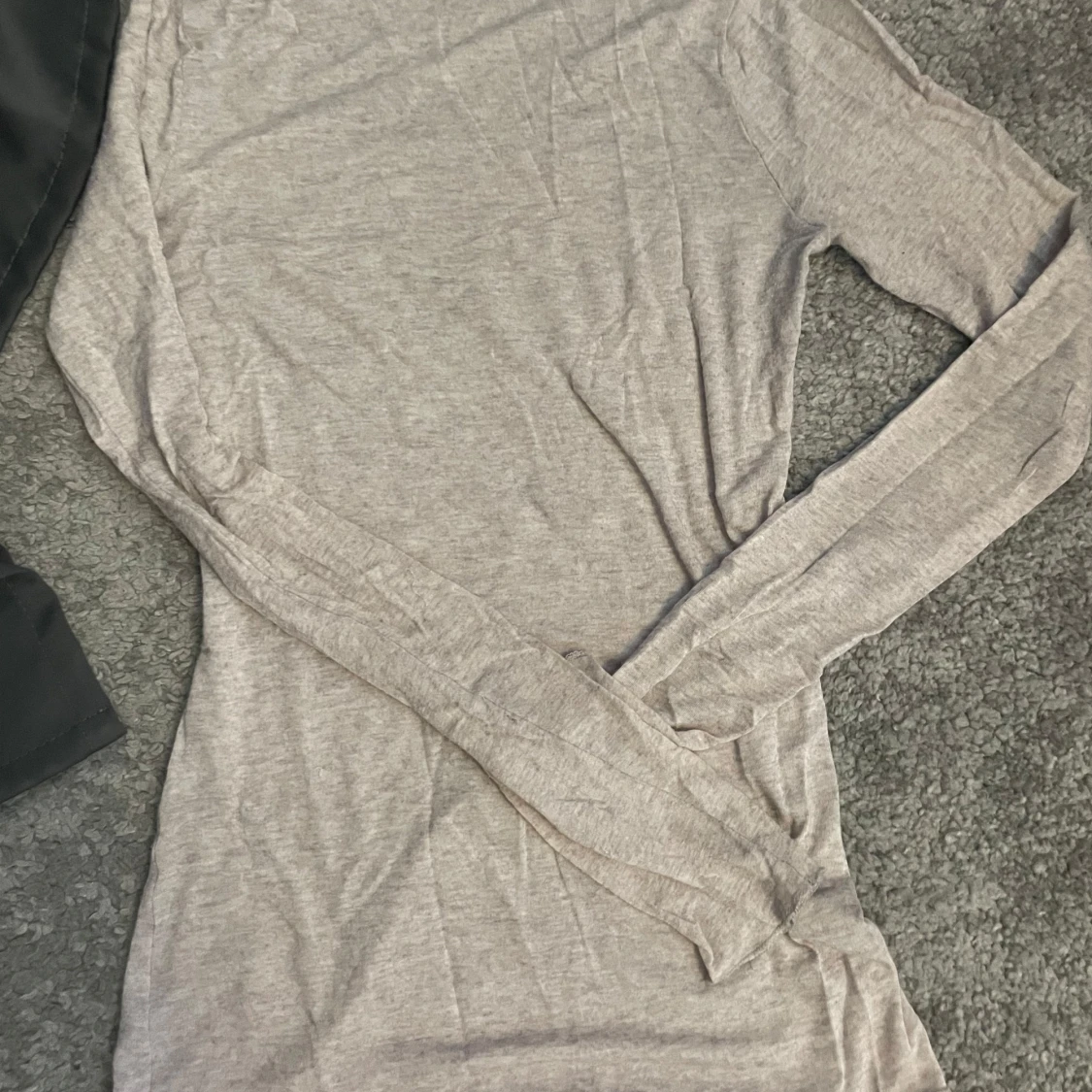 En basic beige långärmad tröja i mjukt och tunt bomullsmaterial. Tröjan har en enkel design med rund hals och normal passform.