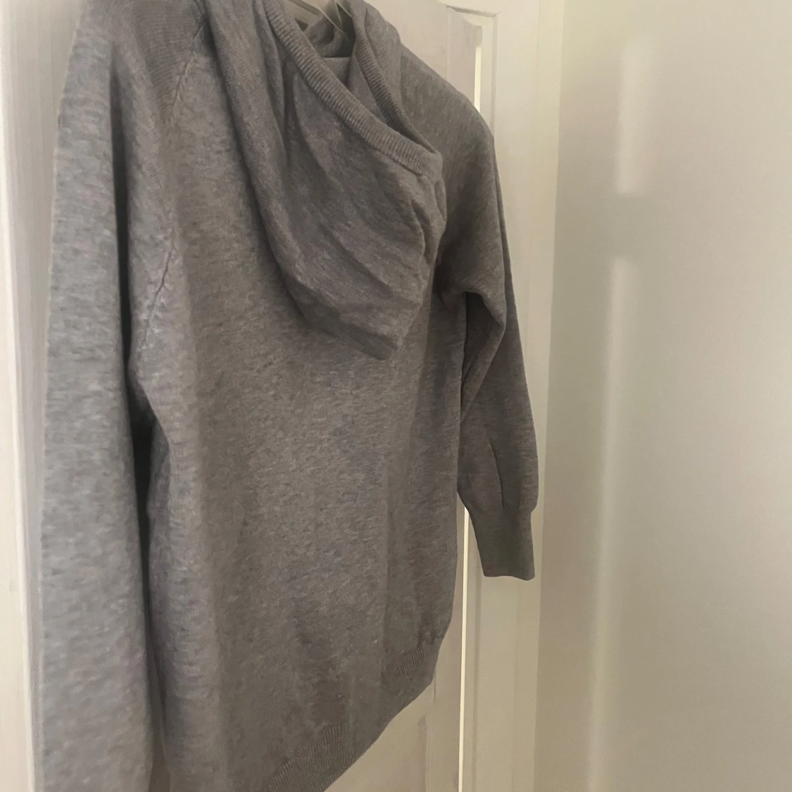Säljer en stilren och bekväm grå hoodie i bomull. Perfekt för både höst och vinter. Den har långa ärmar och en klassisk huva med dragsko. Passar till alla tillfällen när du vill känna dig avslappnad och varm. Helt oanvänd!