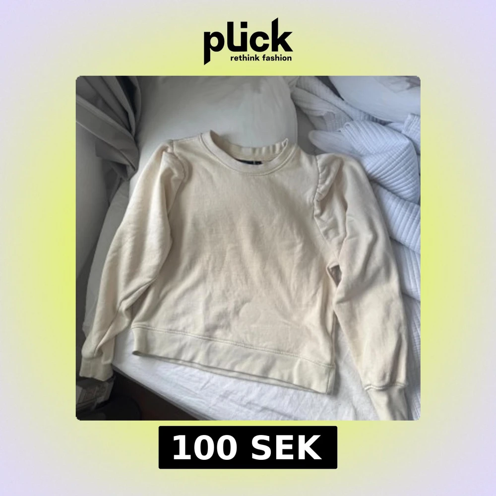 Säljer en beige sweatshirt från KappAhl i storlek S. Tröjan har puffade axlar och rund halsringning, vilket ger en snygg och trendig look. Tillverkad i mjuk bomull, perfekt för chill dagar. Långärmad och med normal passform.