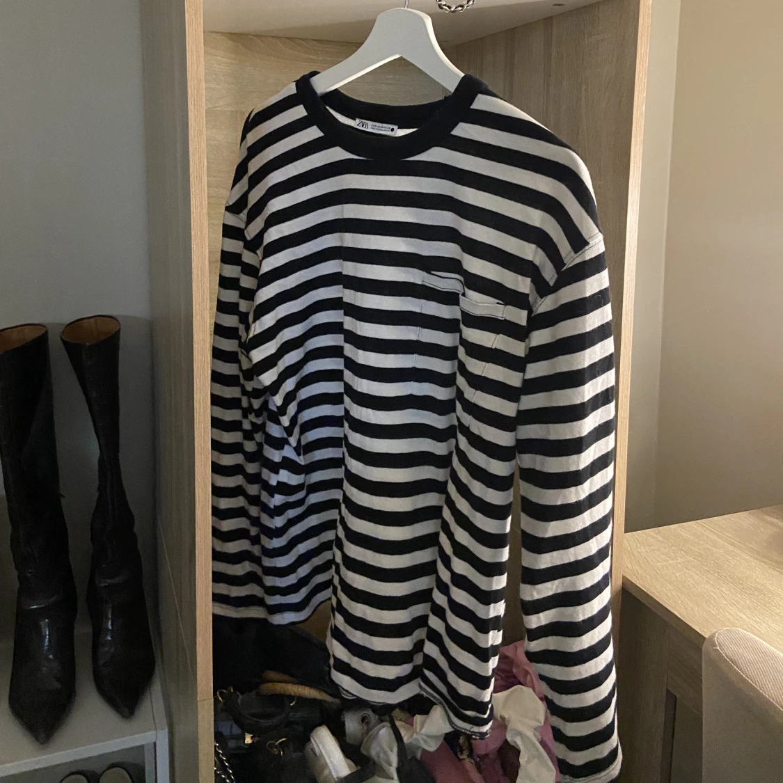 Hejj! Säljer en randig tröja från zara, super fräsch och perfekt till våren! Knappt använd😊