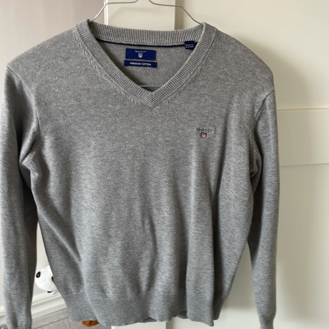 Fin Stickad Gant Teens Normal passform V- ringning Ribbstickade muddar Colour Grey Gant bomulls tröja St 11-12 år hel & fin, knappt använd, köpt på Nk, säljes för 500:- nypris 1100:-
