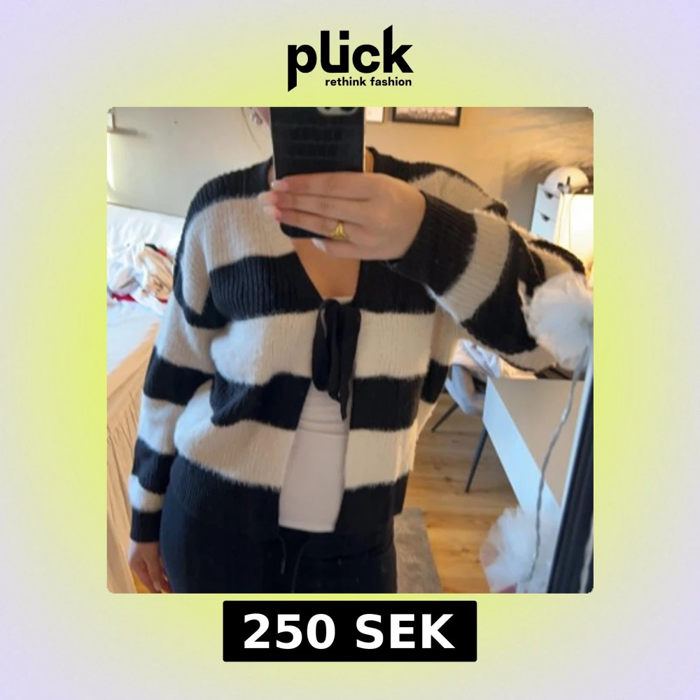 Säljer en mysig svartvit randig kofta med knytband framtill. Koftan har långa ärmar och är perfekt för kyligare dagar. Passar bra till både jeans och kjol. Köpt nyss så den är i nyskick endast använd en gång