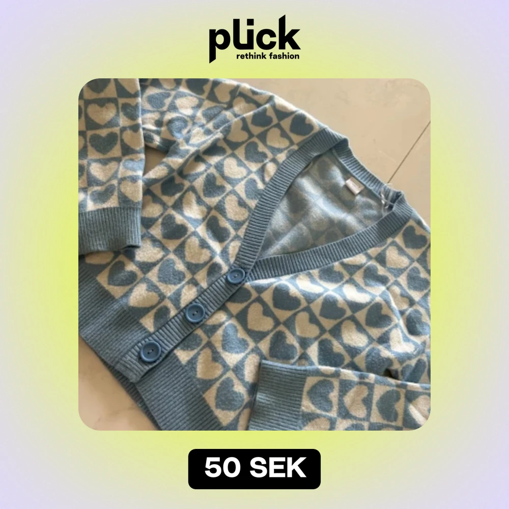 Det är en blå kofta med hjärtan som typ är oanvänd så den är som ny.