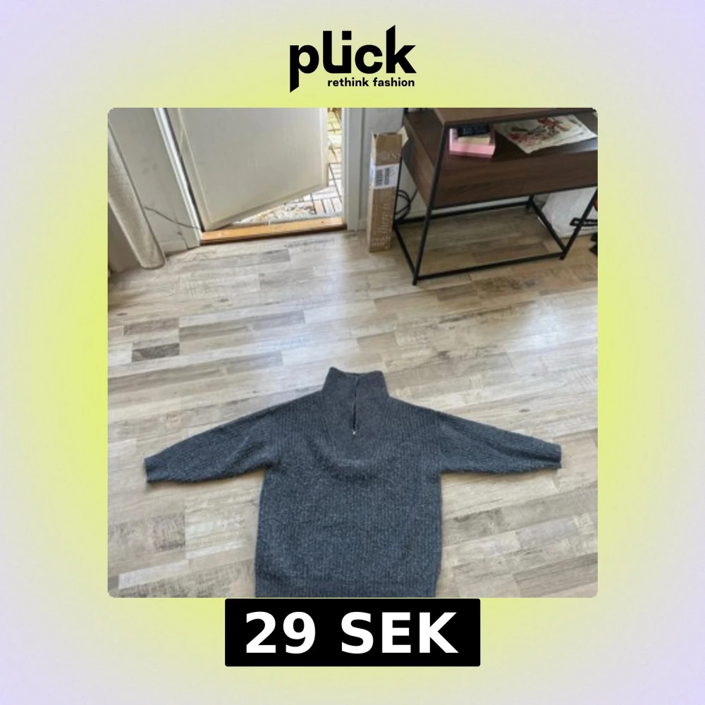 Mysig grå stickad tröja med hög krage och half zip-dragkedja. Perfekt för kyliga dagar och enkel att matcha med jeans eller leggings. Tröjan har långärmad passform och en lite loose siluett för extra komfort.