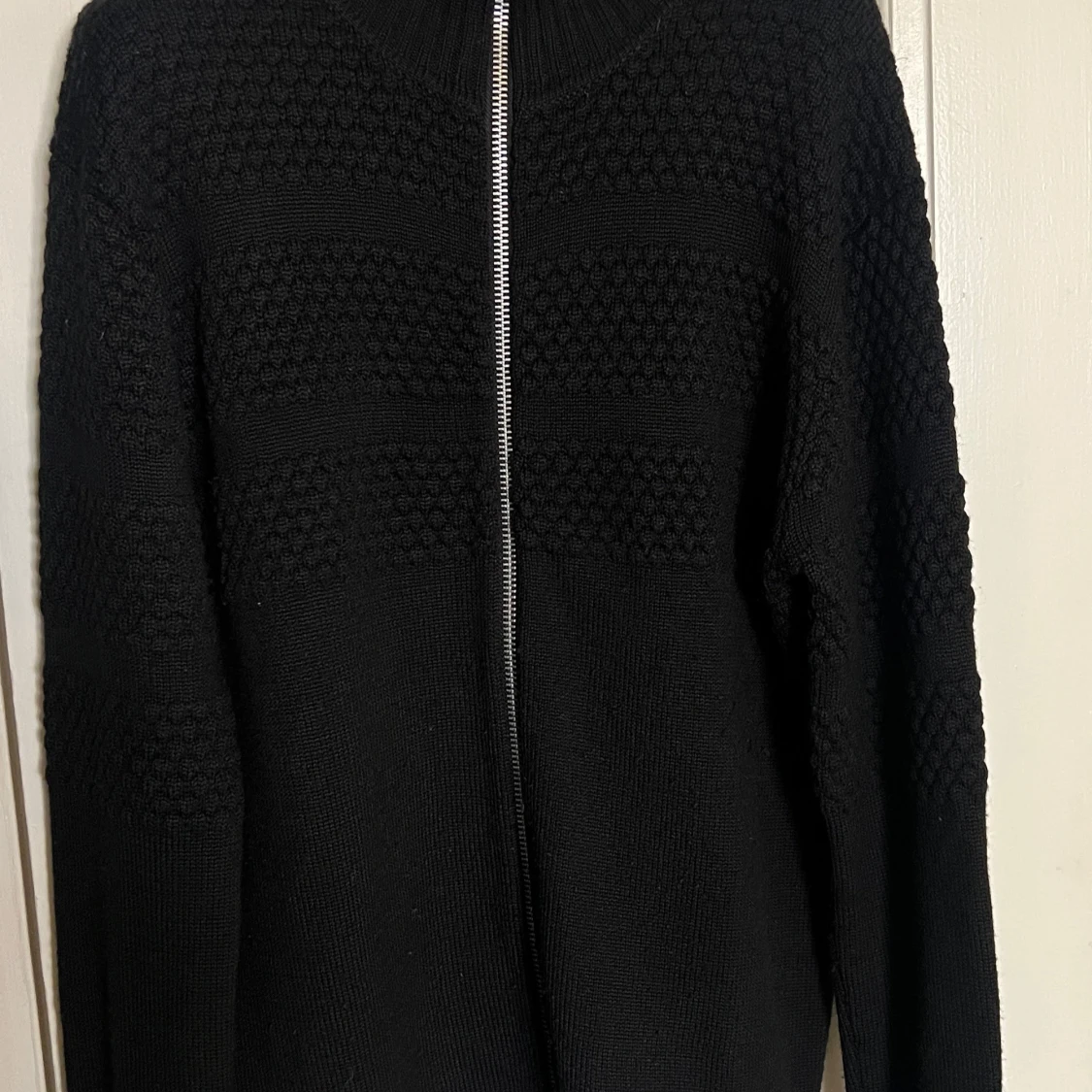 Svart full zip cardigan från Samsøe & Samsøe. Använt men gott skick. Storlek L.