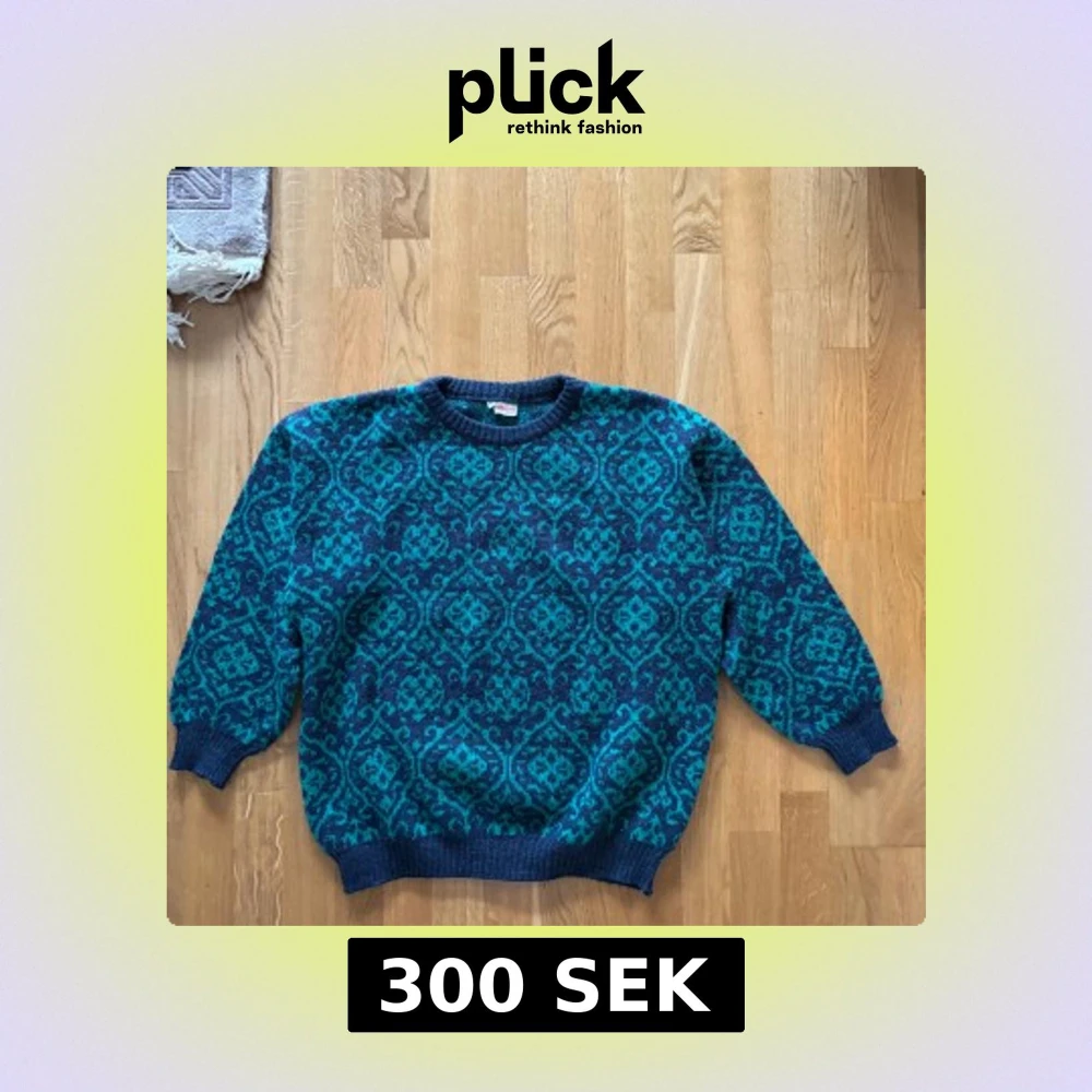 Säljer en snygg blå och turkos tröja från Elisa med ett unikt mönster. Tröjan är stickad och har långa ärmar samt ribbade muddar vid ärmslut och nederkant. Perfekt för kyligare dagar!