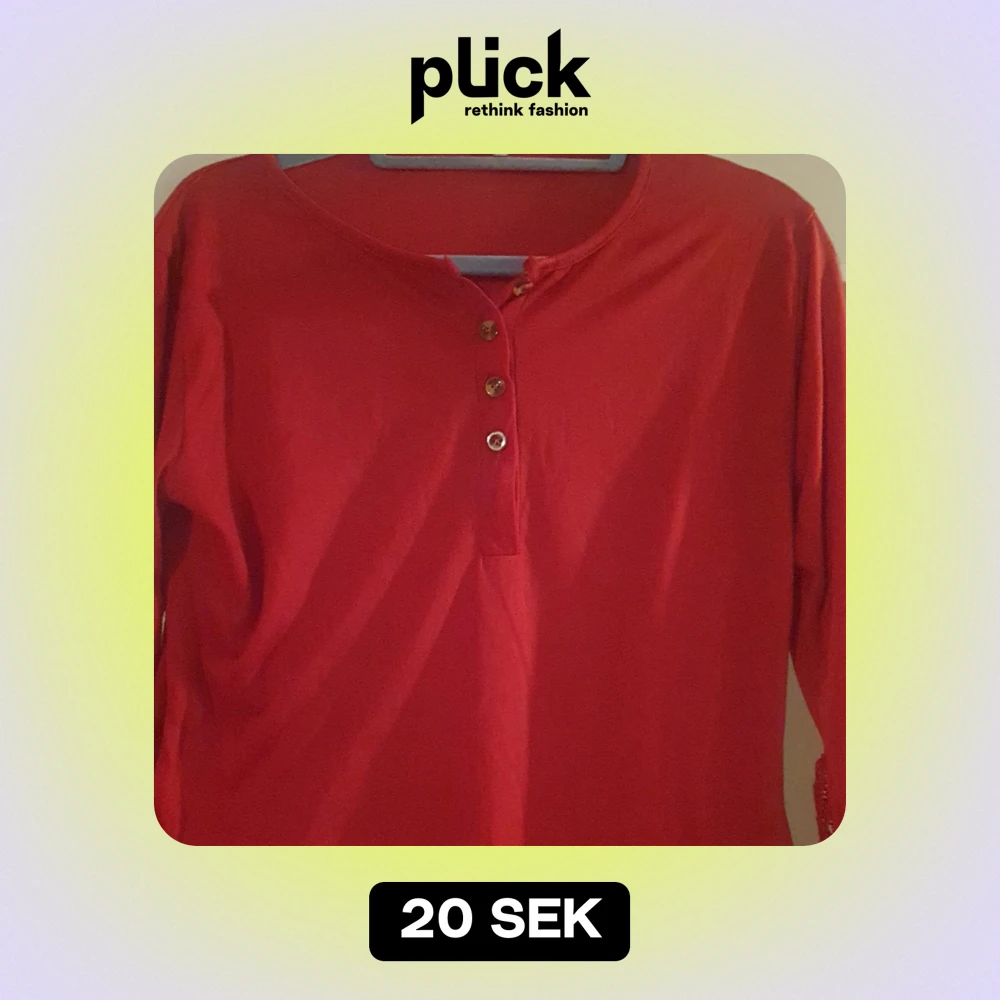 Säljer en snygg röd långärmad topp med knappar framtill och vackra spetsdetaljer längs ärmarna. Perfekt för både vardag och festliga tillfällen. Passar perfekt till höst- och vårgarderoben!