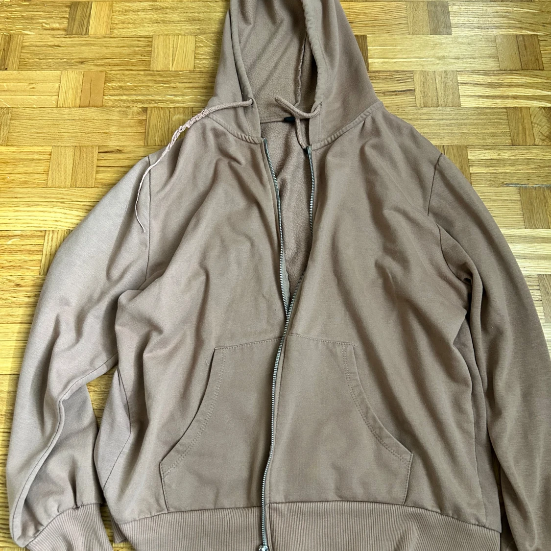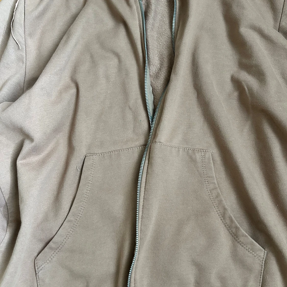 Enkel beige hoodie med dragkedja och huva. Tröjan har två stora fickor framtill och ribbade muddar vid ärmslut och nederkant. Mjuk insida som känns skön mot huden. Perfekt för chill dagar eller när du vill ha något bekvämt.