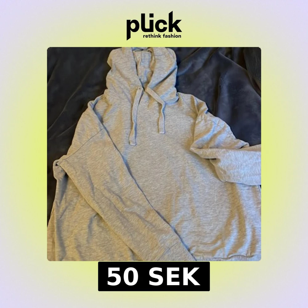 Säljer en stilren grå hoodie. Den har en klassisk design med dragsko i huvan och långa ärmar. Perfekt för en avslappnad look.