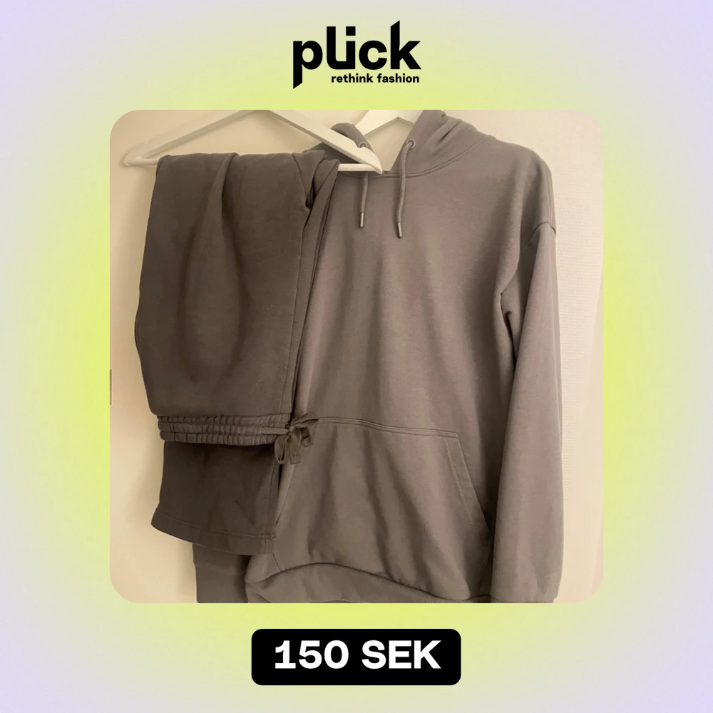 Säljer en superbekväm grå hoodie med matchande byxor. Hoodien har en klassisk design med känguruficka och dragsko i huvan. Perfekt för mysiga dagar hemma eller en avslappnad dag ute. Setet är i bra skick och passar perfekt för höst och vinter.