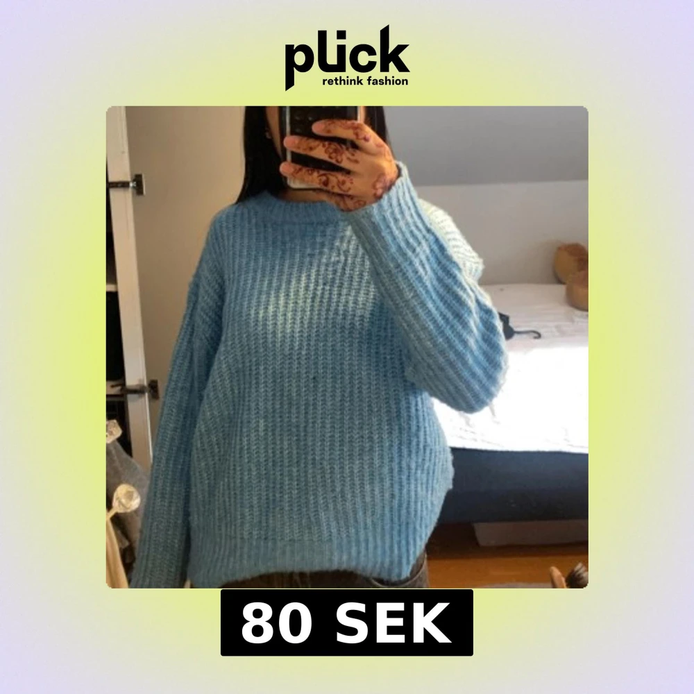 Säljer en supermysig ljusblå stickad tröja med oversized passform.