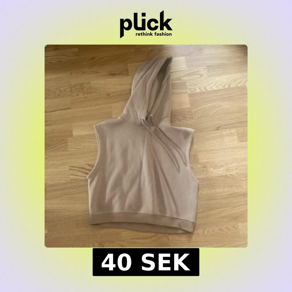 Säljer en beige croppad hoodie utan ärmar med huva och snörning. Perfekt för lager-på-lager och chill dagar. Mjuk och skön i bomullsmix, enkel att matcha med jeans eller tights.