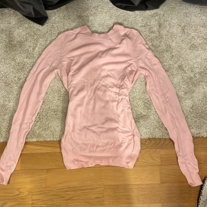 Säljer en söt rosa tröja. Tröjan har en enkel design med långa ärmar och ribbade kanter vid hals och ärmslut. Perfekt för en stilren look.