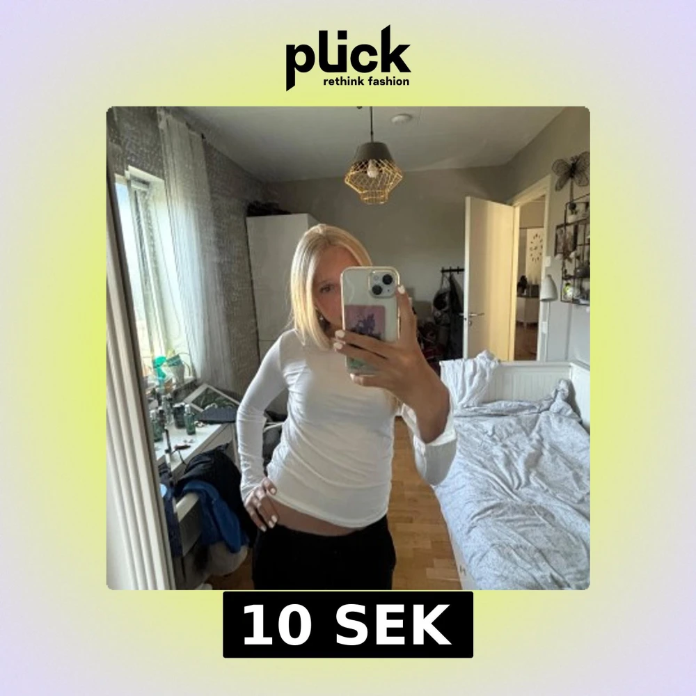 Säljer en enkel och fräsch vit långärmad topp i mjuk bomull. Modellen är slim och sitter snyggt mot kroppen, perfekt att styla med jeans eller kjol. Klassisk rund hals och utan synliga detaljer. Passar dig som gillar clean och stilren look. Lite kort i armarna. Strl 150 men sitter som xxs.