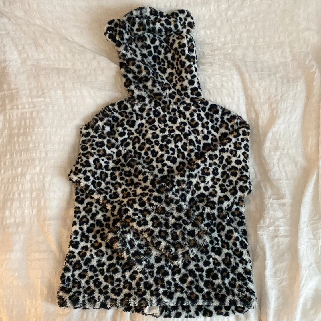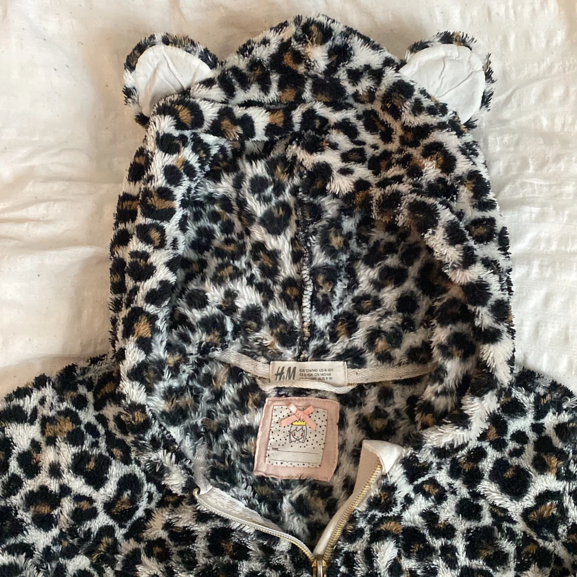 Supermjuk teddyjacka från H&M med leopardmönster i svart, brun och beige. Jackan har huva med söta öron och dragkedja framtill. Perfekt för dig som vill sticka ut och hålla dig varm med stil 🫶🫶