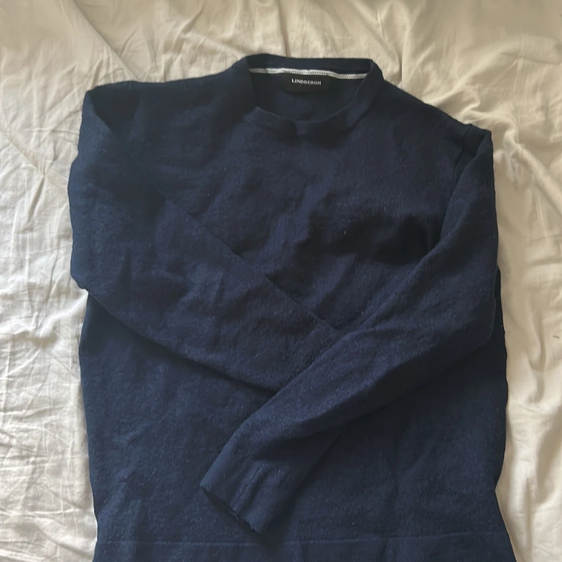 Snygg mörkblå tröja från Lindbergh i mjuk ull. Klassisk rak modell med rund halsringning och långa ärmar. Perfekt att styla med jeans eller chinos för en clean look. Sitter som en S-XS
