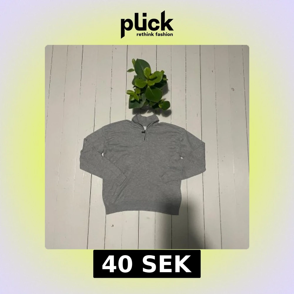 Grå långärmad tröja från Lindex med half zip och hög krage. Tröjan är i mjuk bomull och har ribbade muddar vid ärmslut och nederkant. Perfekt för dig som gillar enkel och clean stil. Passar dig som vill ha en basic men snygg look. Tröjan har dock två små hål i ena armhålan. Axelbredden är 46cm. Längden är 52cm. Ärmar 45cm.