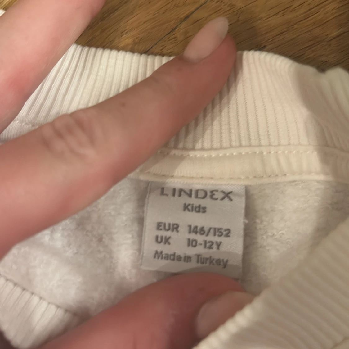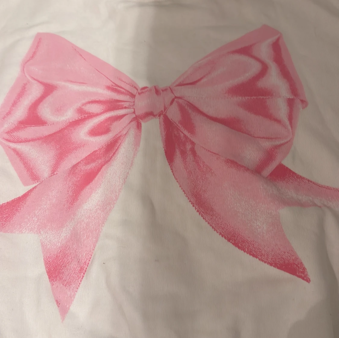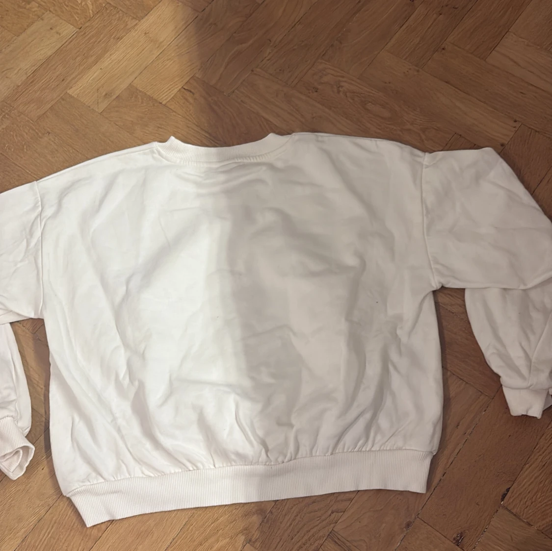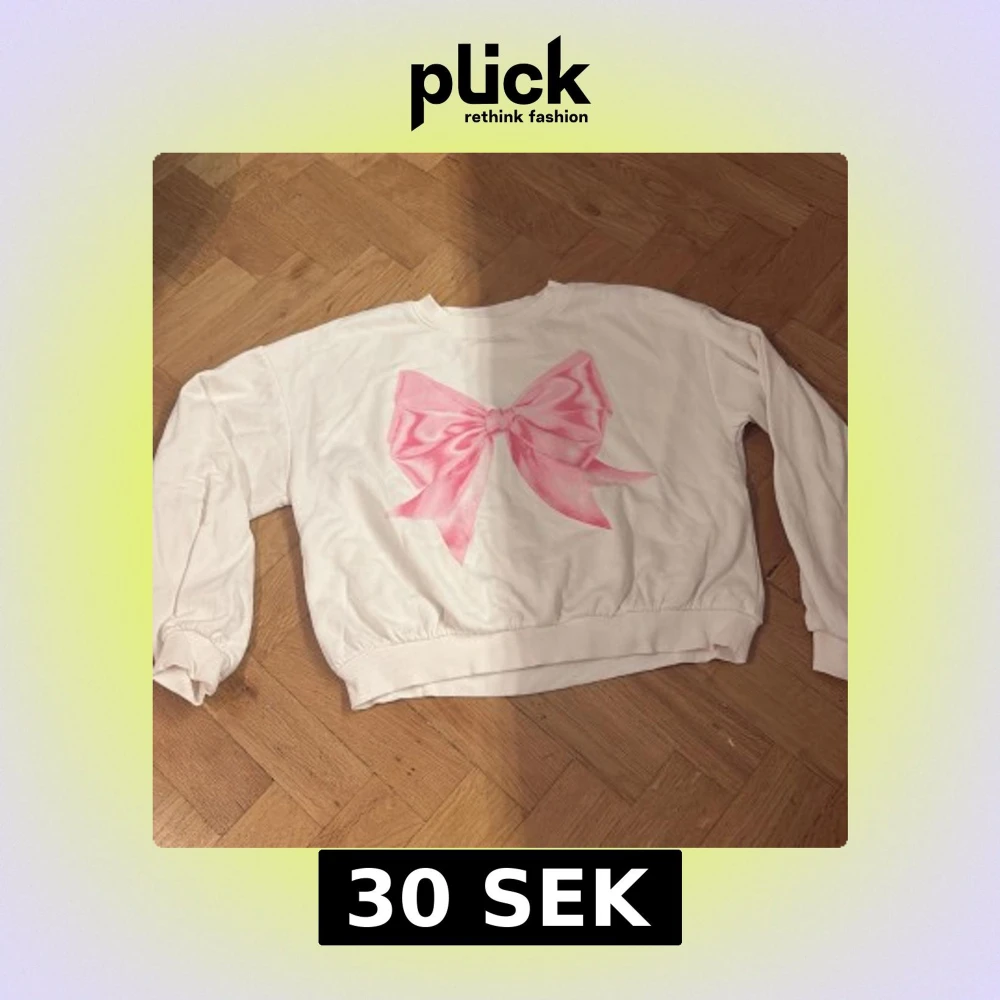 Vit sweatshirt från Lindex med en stor rosa rosett framtill. Tröjan har rund hals, långa ärmar och ribbade muddar vid ärmslut och nederkant. Tillverkad i mjuk bomullsmix, perfekt för en söt och avslappnad stil.
